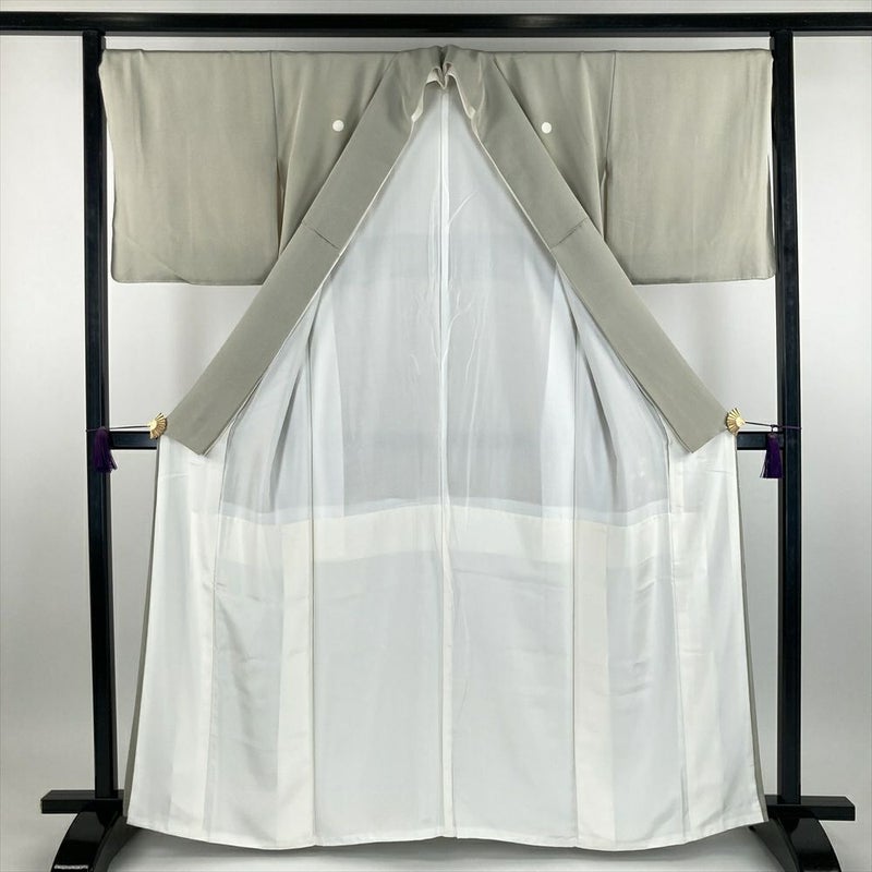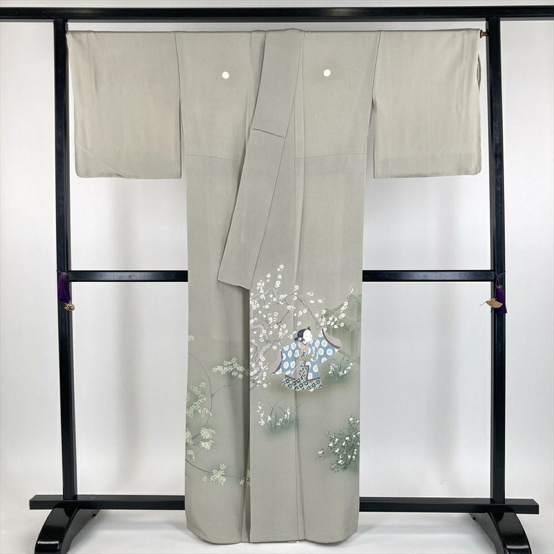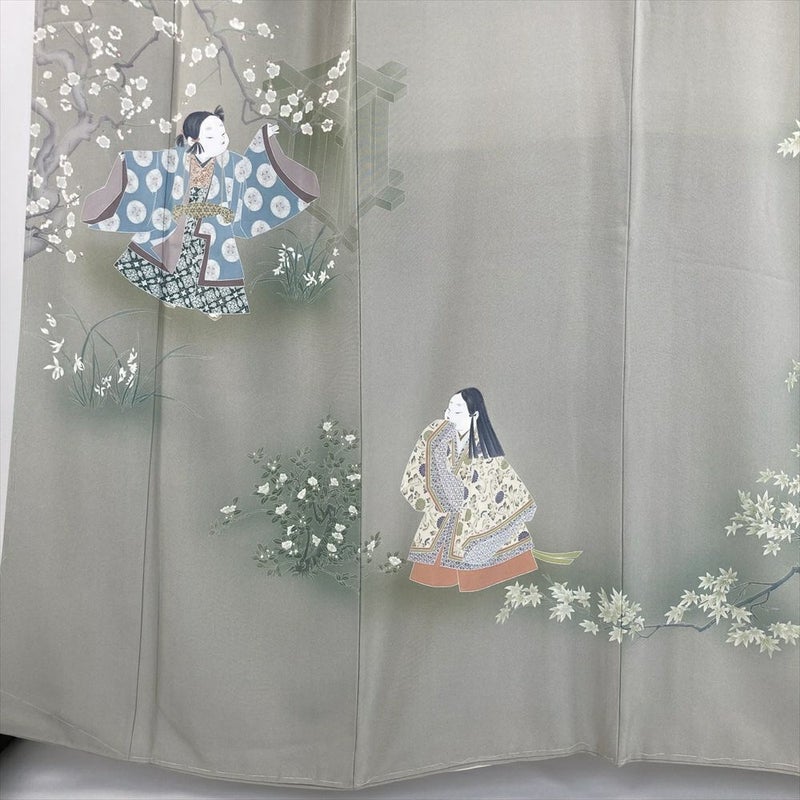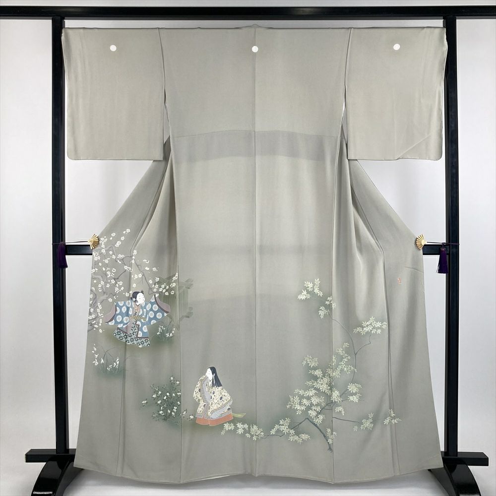 (中古) 初代由水十久 色留袖 グレー 浅緑色 フォーマル ちりめん 染め 唐子 四季花 袷 【身丈】158cm【裄丈】70cm