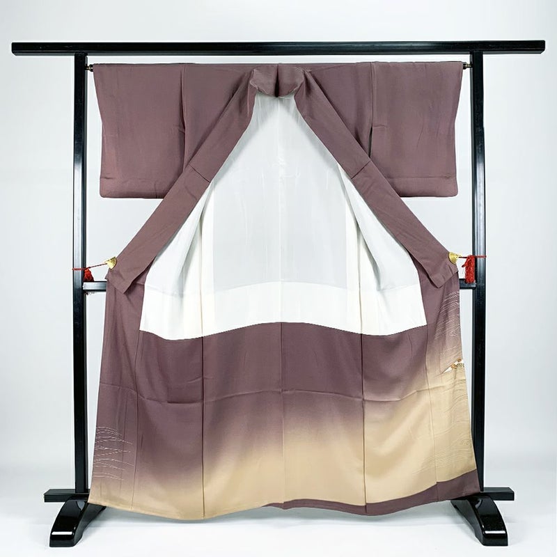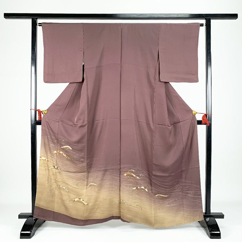 (中古)色留袖 紫 フォーマル 一つ紋 袷 流水 菊 グラデーション ぼかし 金駒刺繍【身丈】159.5cm【裄丈】64.5cm