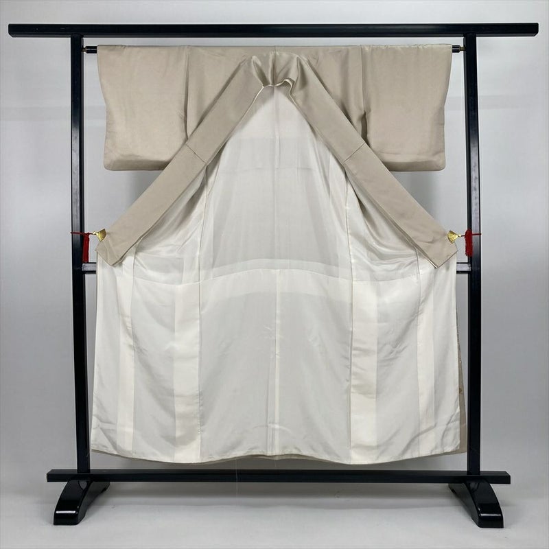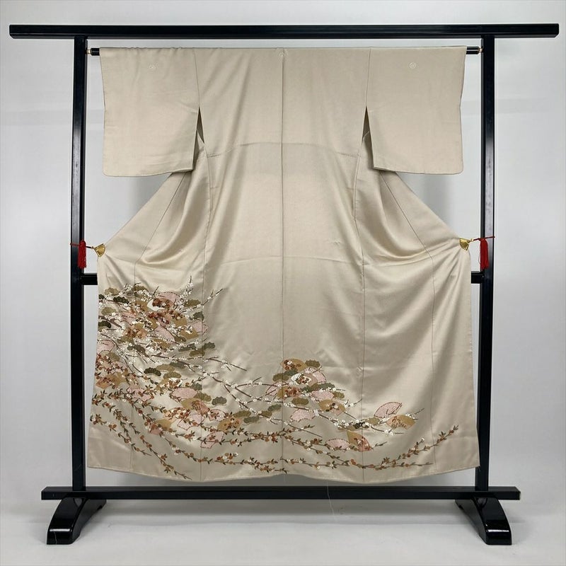 (中古)色留袖 ベージュ フォーマル 金糸 地紋織り 総刺繍 金駒刺繍 疋田柄刺繍 スワトウ刺繍 五つ紋 袷 SS【身丈】148.5cm【裄丈】64cm
