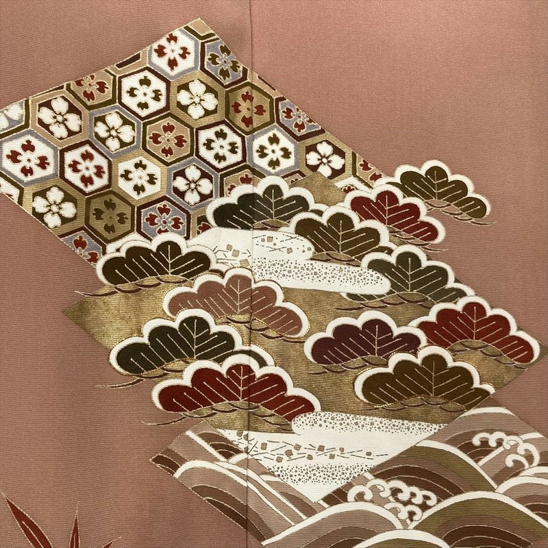 【色柄】ピンク フォーマル 一つ紋 金駒刺繍 金彩 菱 松 竹 亀甲 波 霞