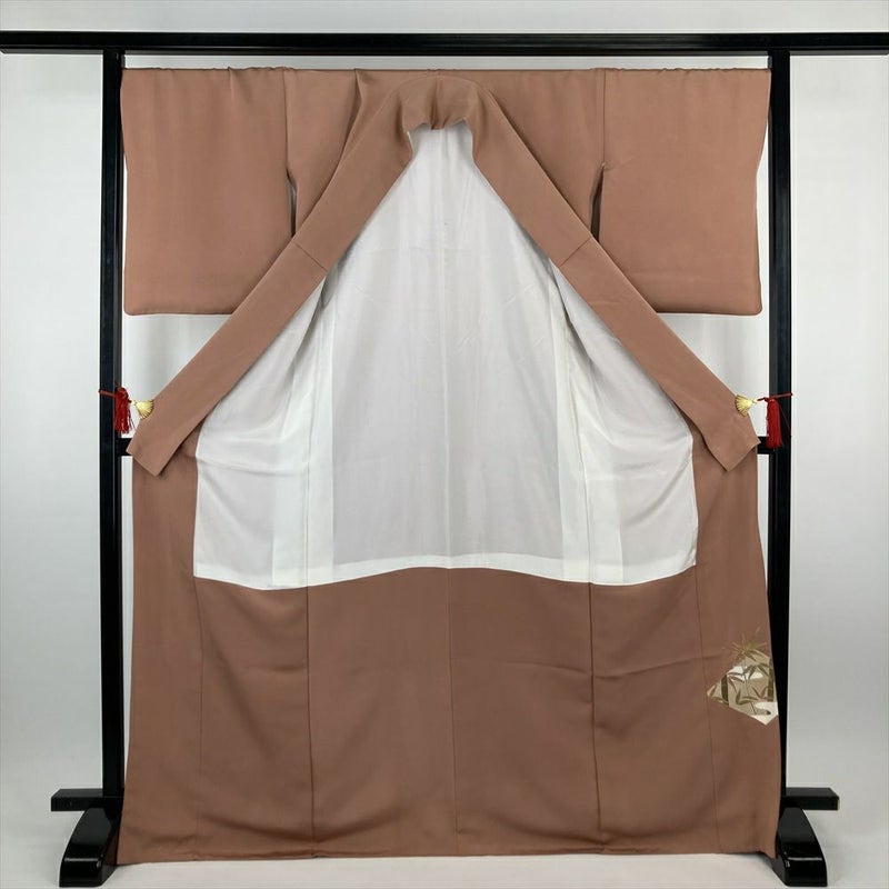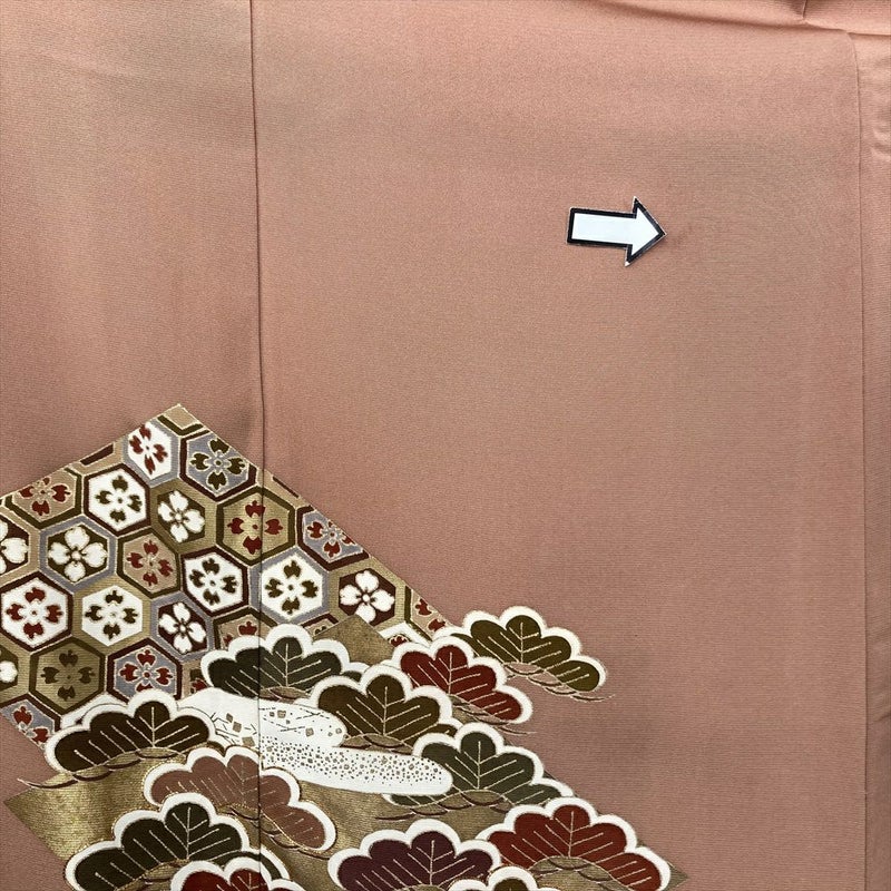 (中古)色留袖 ピンク フォーマル 一つ紋 金駒刺繍 金彩 菱 松 竹 亀甲 波 霞 袷 L【身丈】167.5cm【裄丈】69.5cm