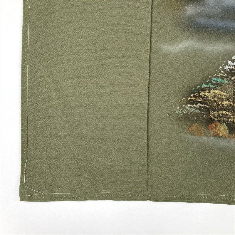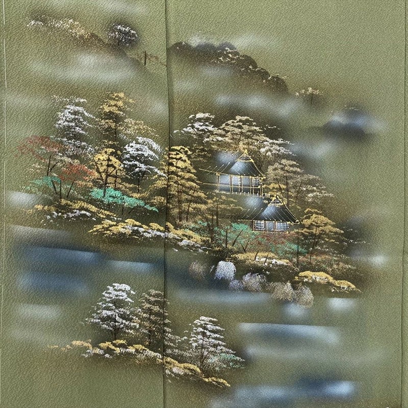 【色柄】緑色 フォーマル ちりめん 金彩 銀彩 庭園