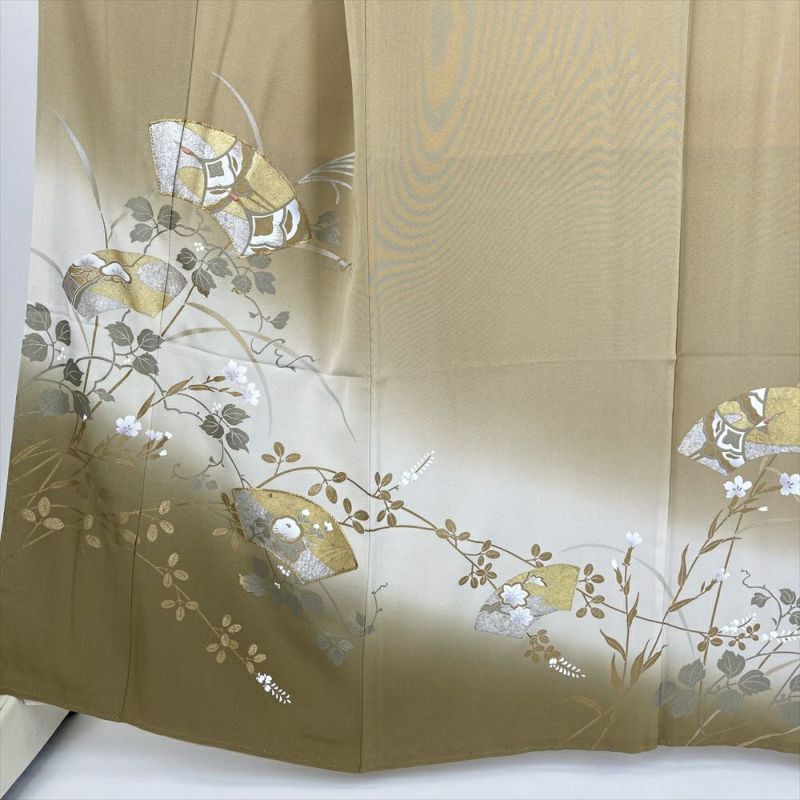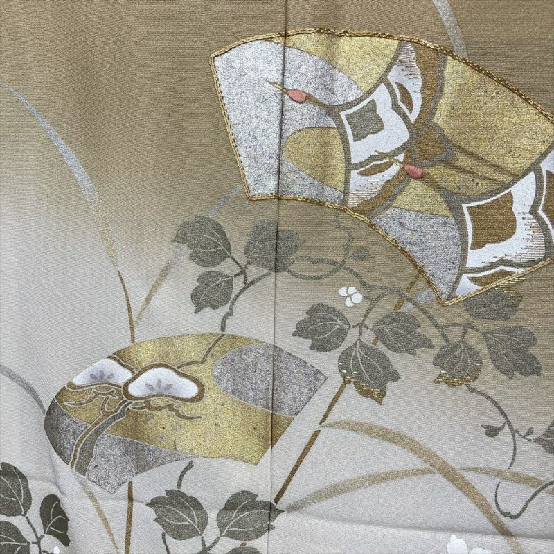 【色柄】カーキ 金 黄土色 フォーマル 琳派 扇面