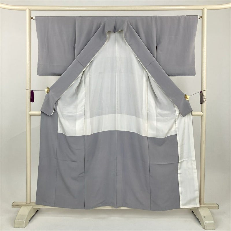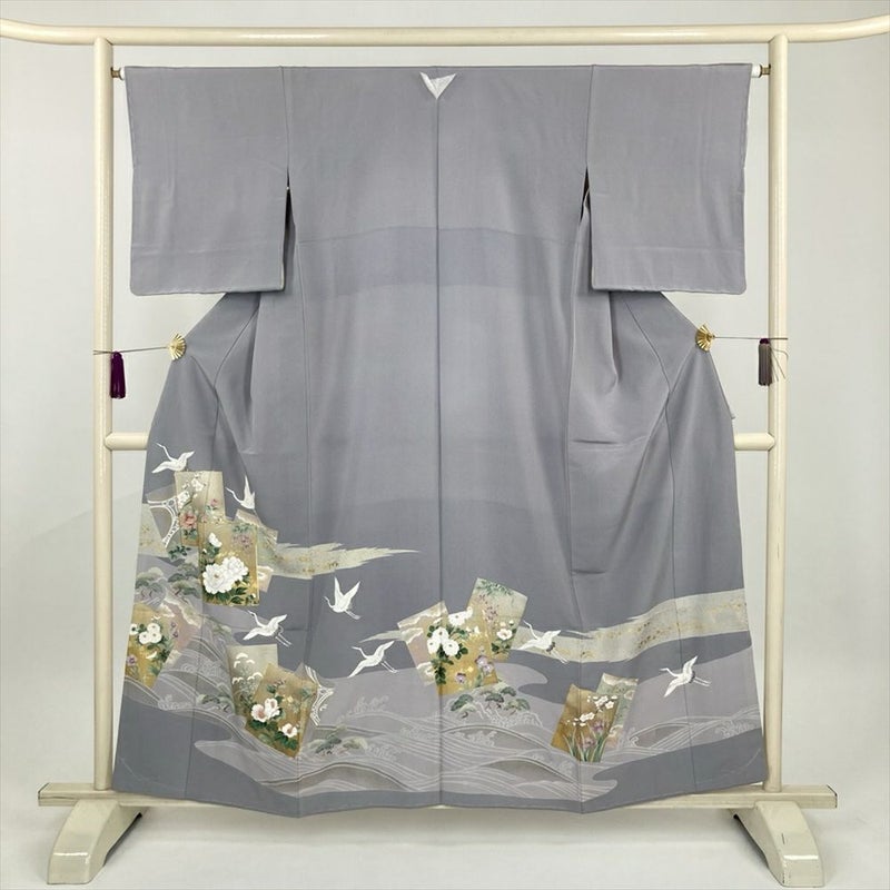 (中古) 色留袖 グレー フォーマル 色紙文 鶴 流水 袷 絹【身丈】154.5cm【裄丈】65cm