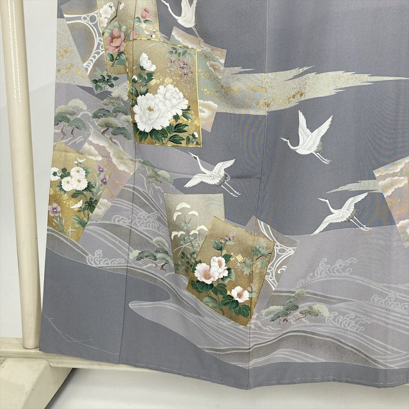 【色柄】グレー フォーマル 色紙文 鶴 流水