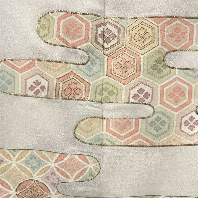 古典的な「エ霞(えがすみ)」に「吉祥文」を配した意匠は、華やかで品格があります。