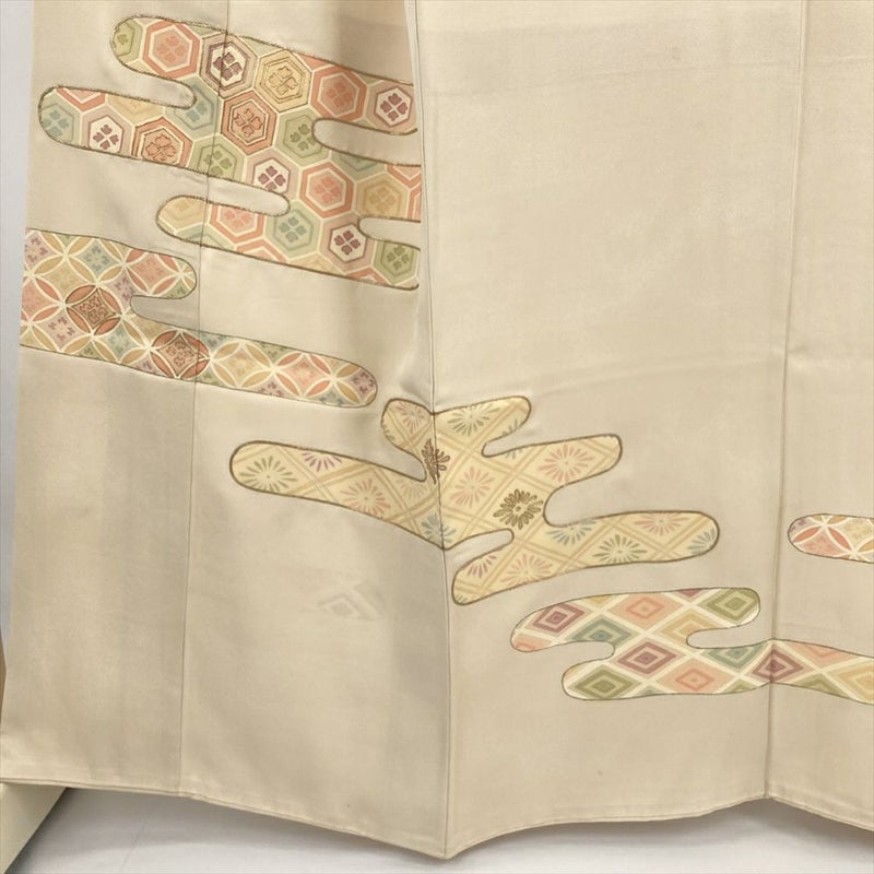 【色柄】淡黄 クリーム フォーマル 金駒刺繍 エ霞 吉祥文