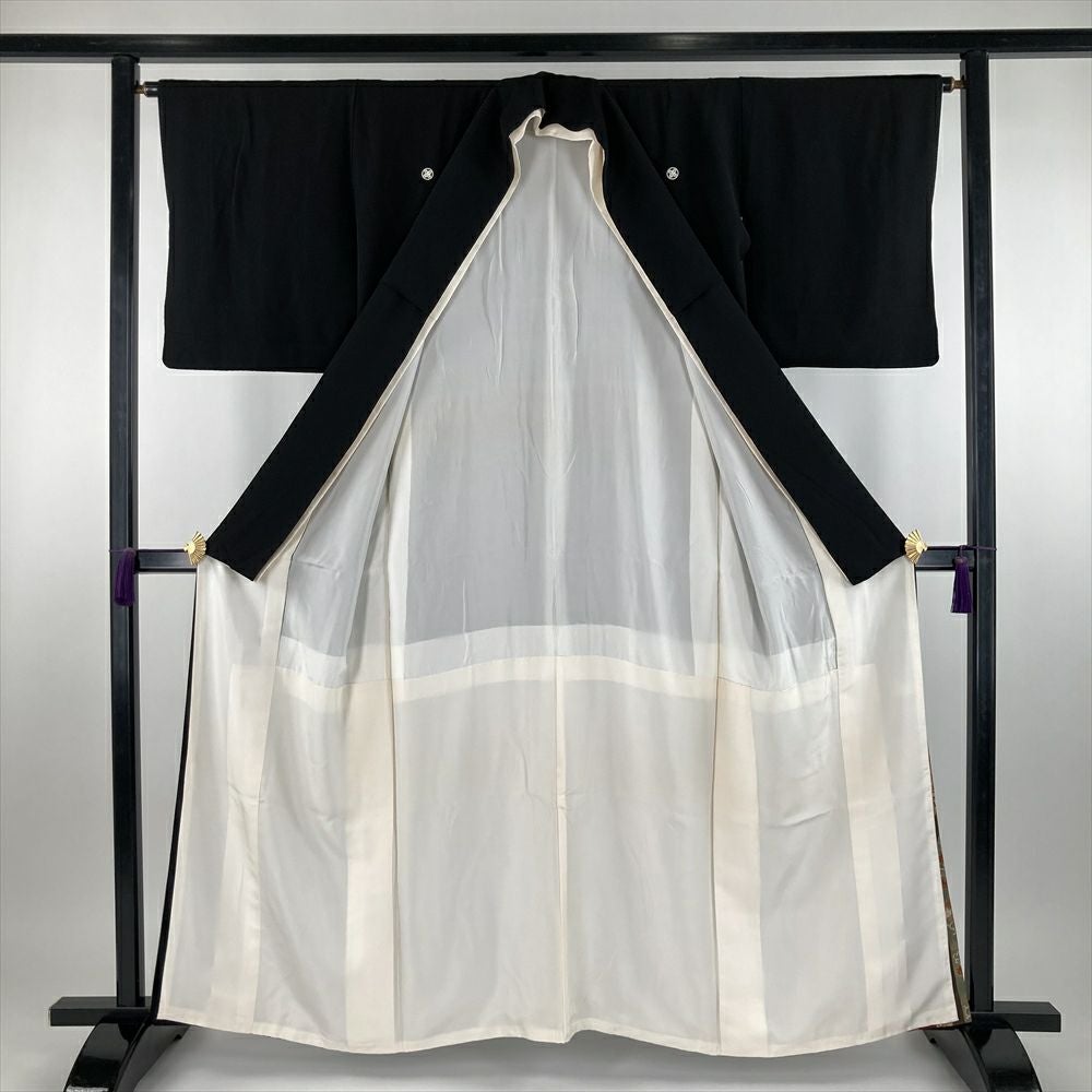 他の画像を見る (中古)黒留袖 黒 フォーマル 五つ紋 ちりめん 金駒刺繍 金彩 鳥 地紙 牡丹 菊 梅 菖蒲 萩 桔梗 流水 霞 衿裾比翼 袷 M【身丈】162.5cm【裄丈】66.5cm ¥ 22,000 税込 在庫切れ お気に入りに登録する