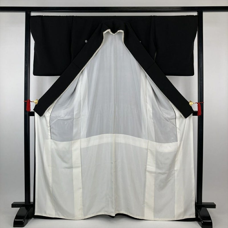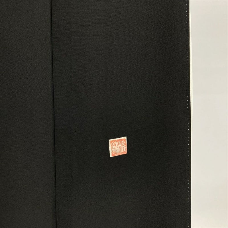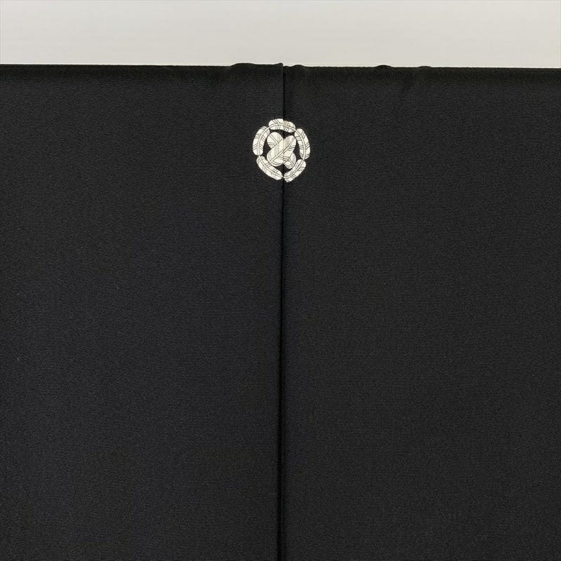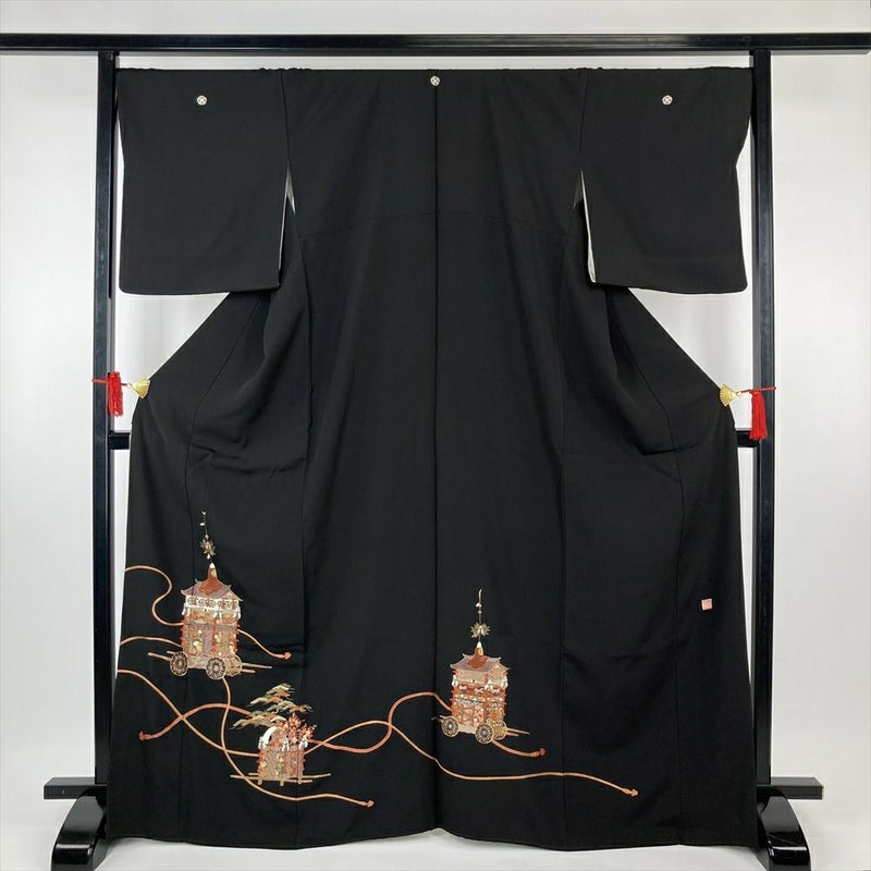 【色柄】黒 フォーマル ちりめん 五つ紋 比翼 刺繍 山車 組紐