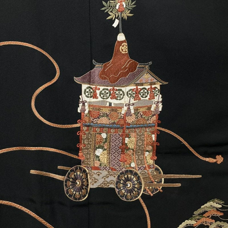 -正絹 ちりめん 刺繍黒留袖 山車-