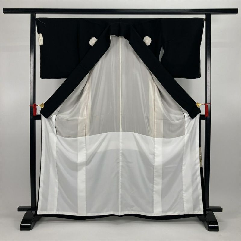 (中古)黒留袖 黒 フォーマル 金彩 百人一首 扇面に四季花 五つ紋 落款あり 袷 M【身丈】163.5cm【裄丈】67.5cm