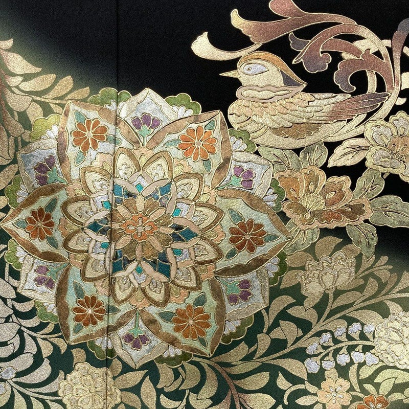 【色柄】黒 フォーマル 金彩 花鳥 オリエンタル