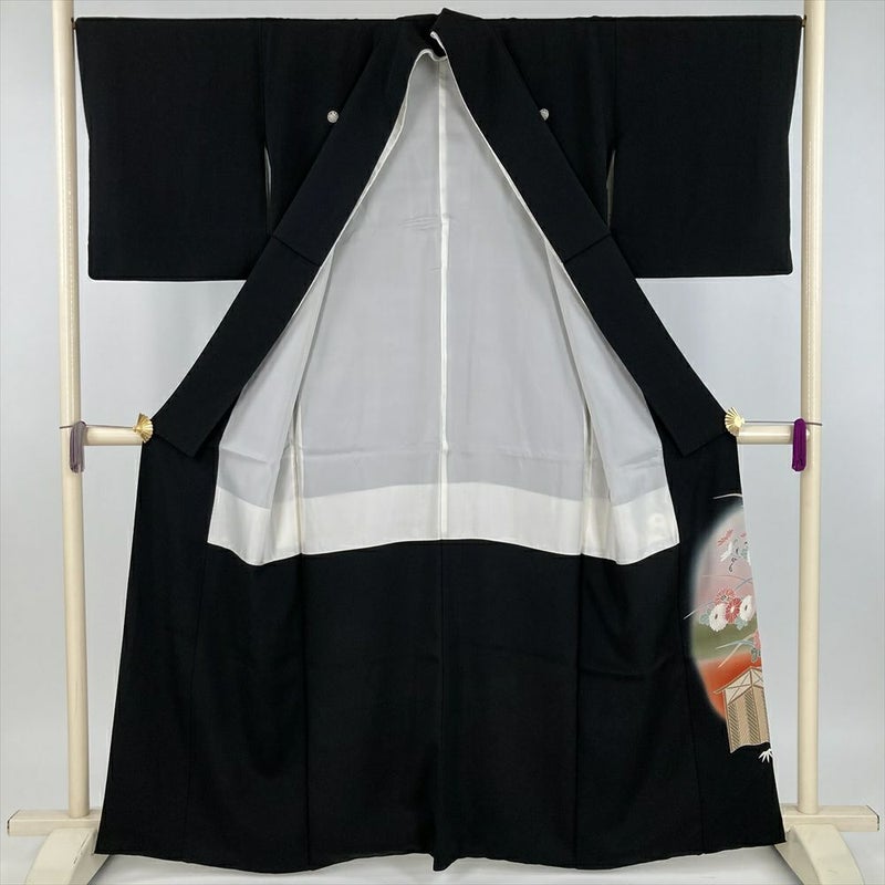 (中古) 黒留袖 黒 フォーマル 金彩 古典 花鳥 袷 絹 【身丈】155cm【裄丈】67cm