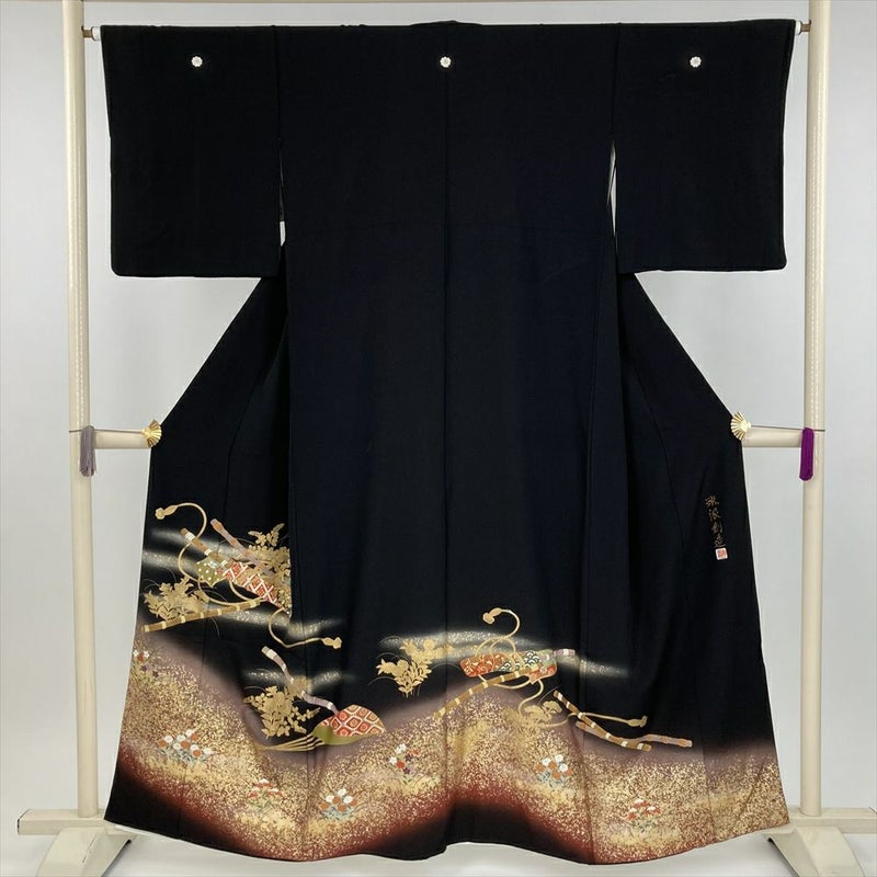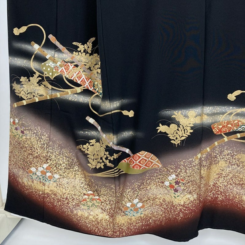 (中古) 黒留袖 黒 フォーマル 琳派 篠笛 袷 絹 【身丈】154cm【裄丈】65.5cm