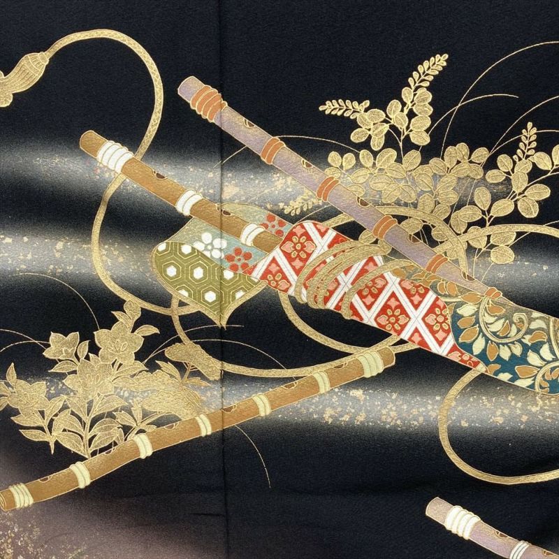 【色柄】黒 フォーマル 琳派 篠笛