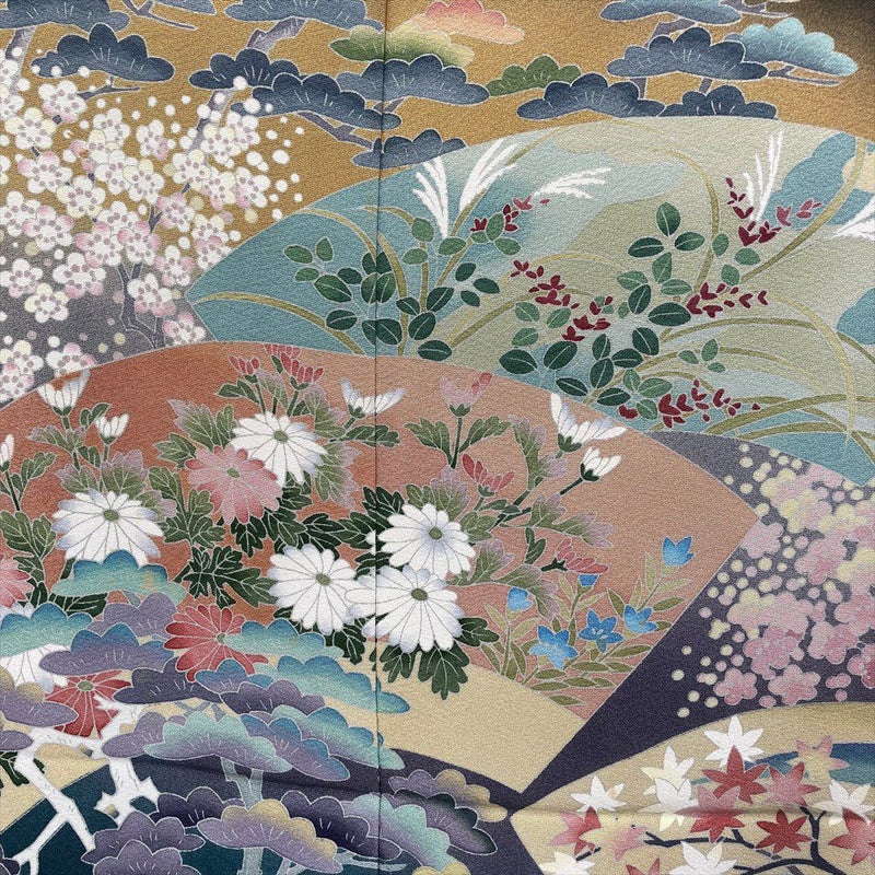 末広がりの扇面には、四季折々の花々が雅やかに描かれています。