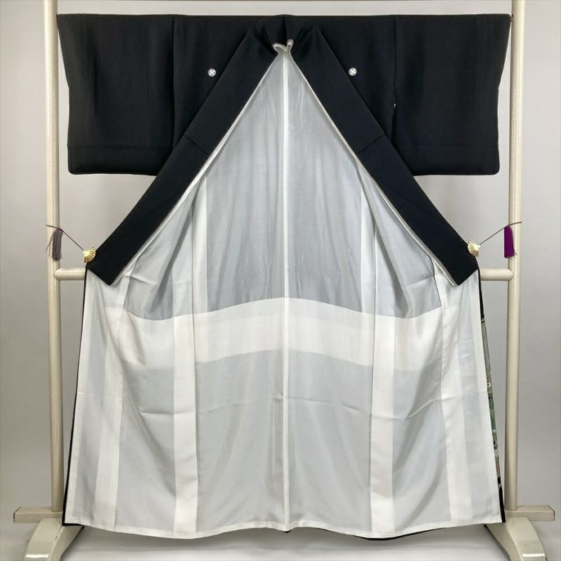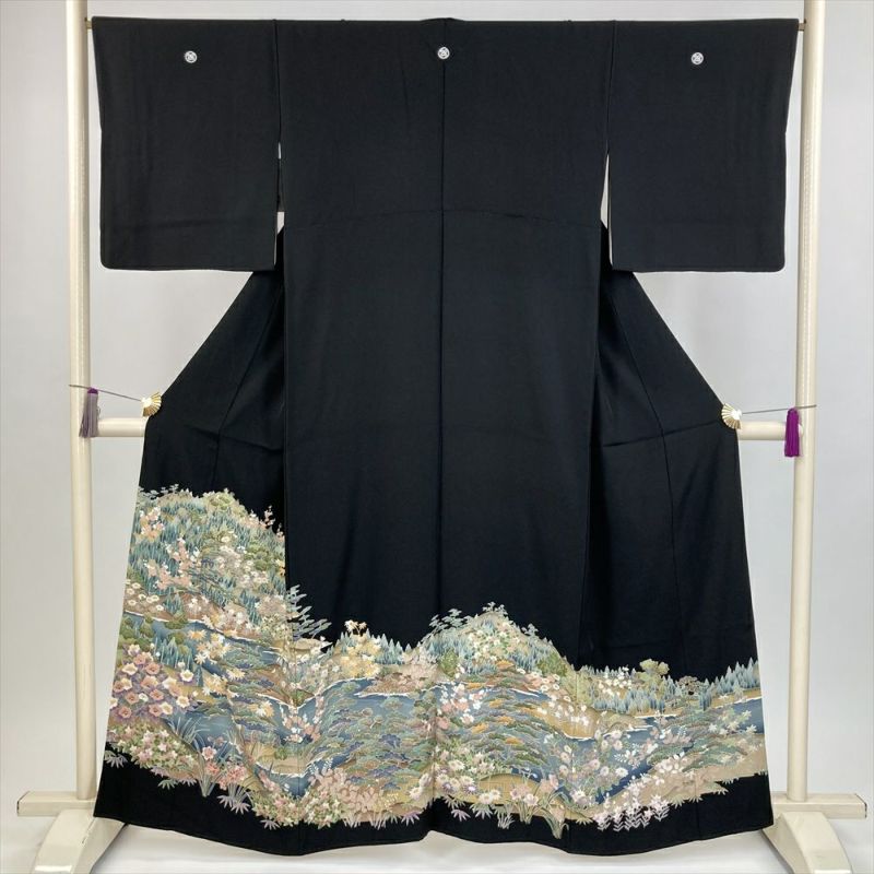 (中古) 黒留袖 黒 フォーマル 四季花 庭園 袷 絹 【身丈】156cm【裄丈】67cm