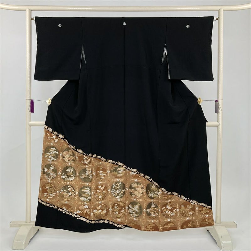 (中古) 黒留袖 黒 フォーマル 丸文 四季の草花 袷 絹【身丈】154cm【裄丈】66cm
