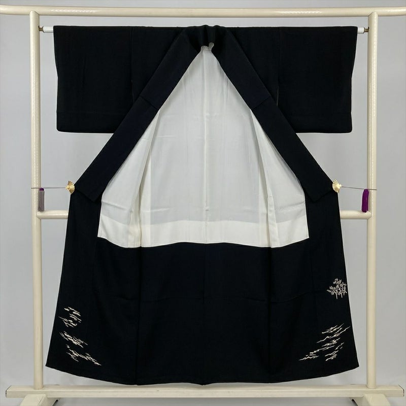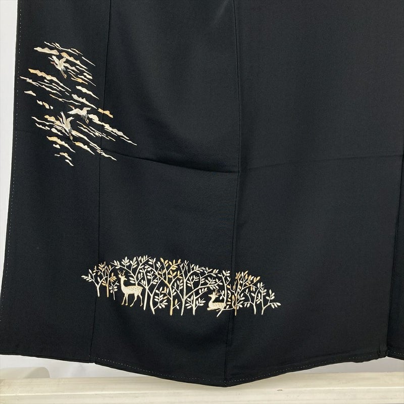 (中古) 黒留袖 黒 フォーマル 鶴 鹿 袷 絹 【身丈】148cm【裄丈】61cm