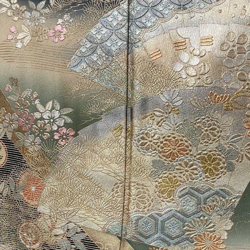 (中古) 黒留袖 黒 フォーマル 檜扇 四季花 袷 絹 【身丈】161cm【裄丈】66cm
