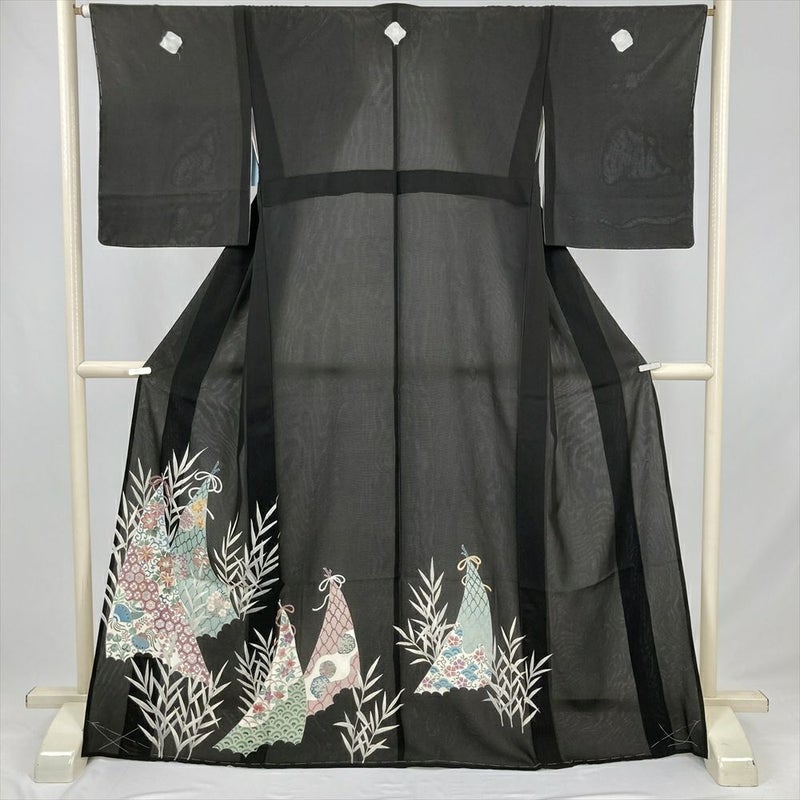 (中古) 夏黒留袖 黒 フォーマル おめでたい 筍の意匠 夏 絹 【身丈】162cm【裄丈】66cm