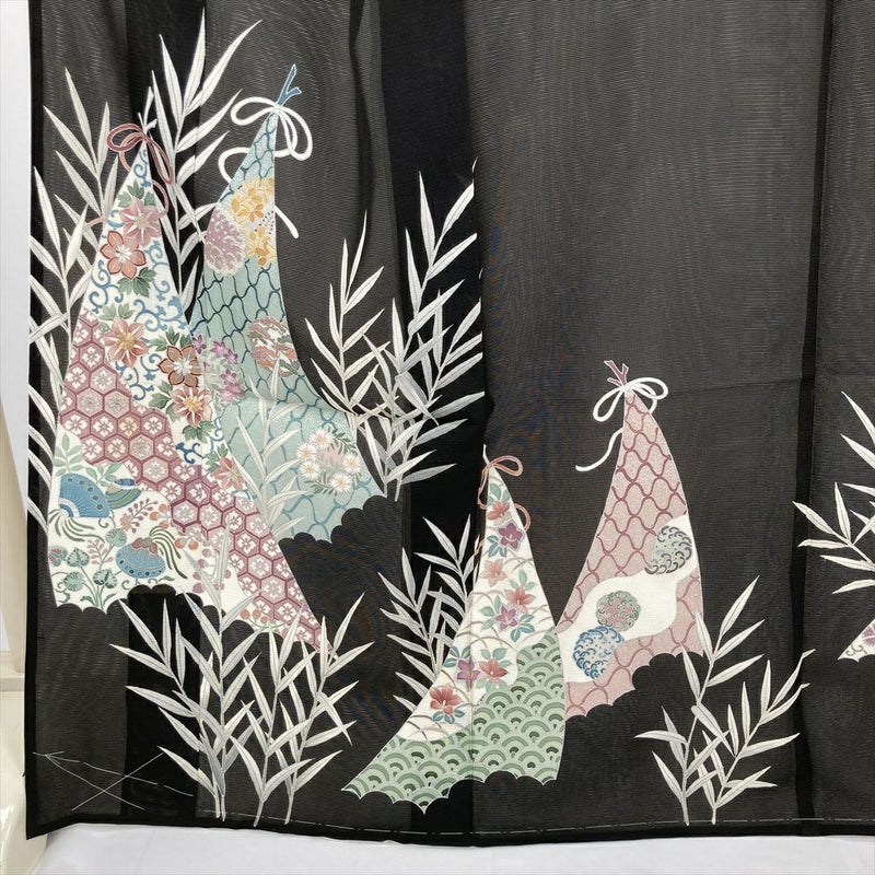 <div class=黒の絽地に、すくすく伸びる筍が描かれた夏の黒留袖。