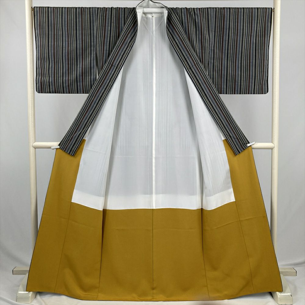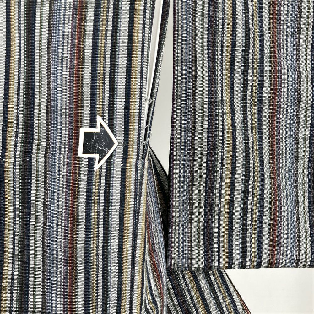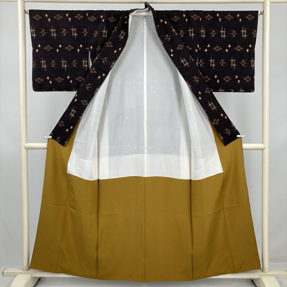 他の画像を見る (中古) 紬 グレージュ 灰茶 カジュアル 二代目川村久太郎 落款 染め大島 幾何学 袷 絹 【身丈】151.5cm【裄丈】63cm 新入荷 ¥ 55,000 税込 お気に入りに登録する