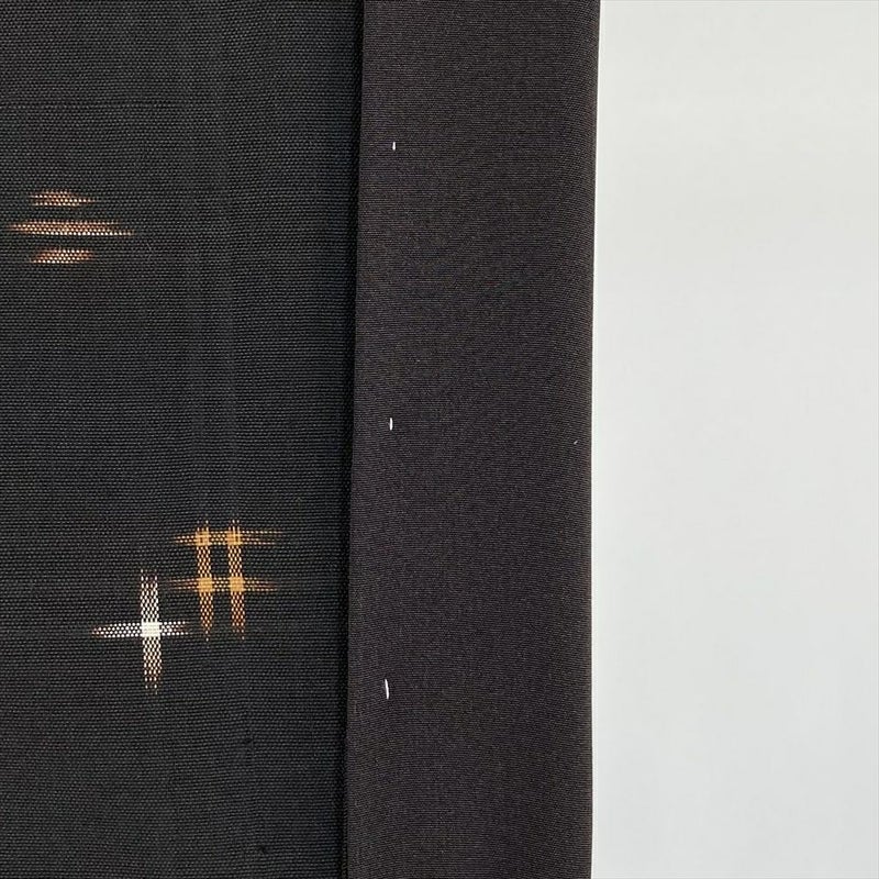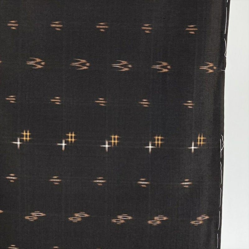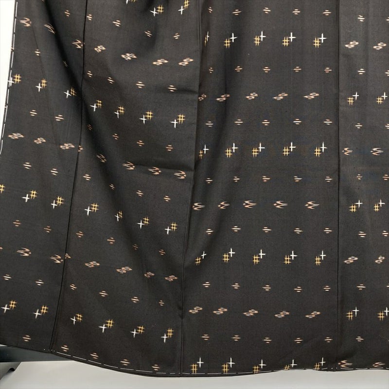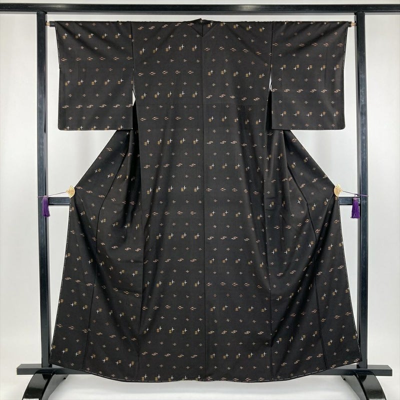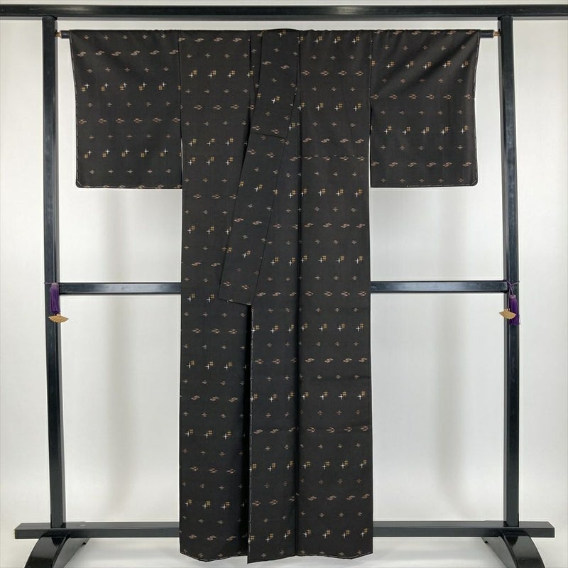 (中古) 久米島紬 焦げ茶色 カジュアル 織り絣柄 小鳥 風車 袷【身丈】155.5cm【裄丈】65cm