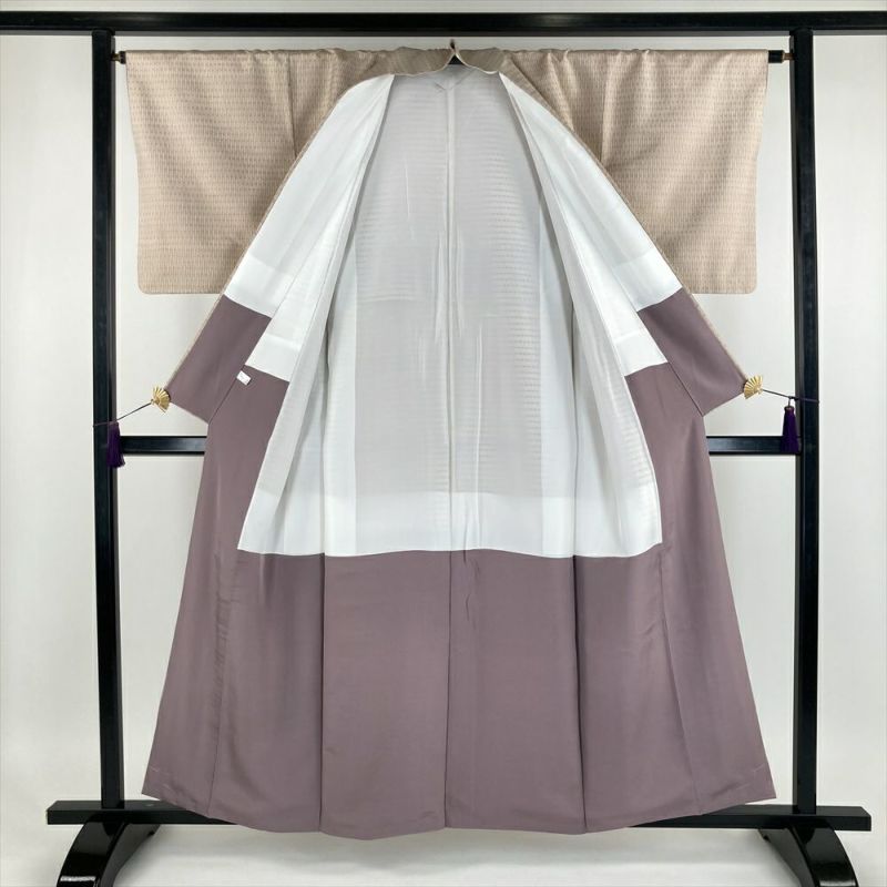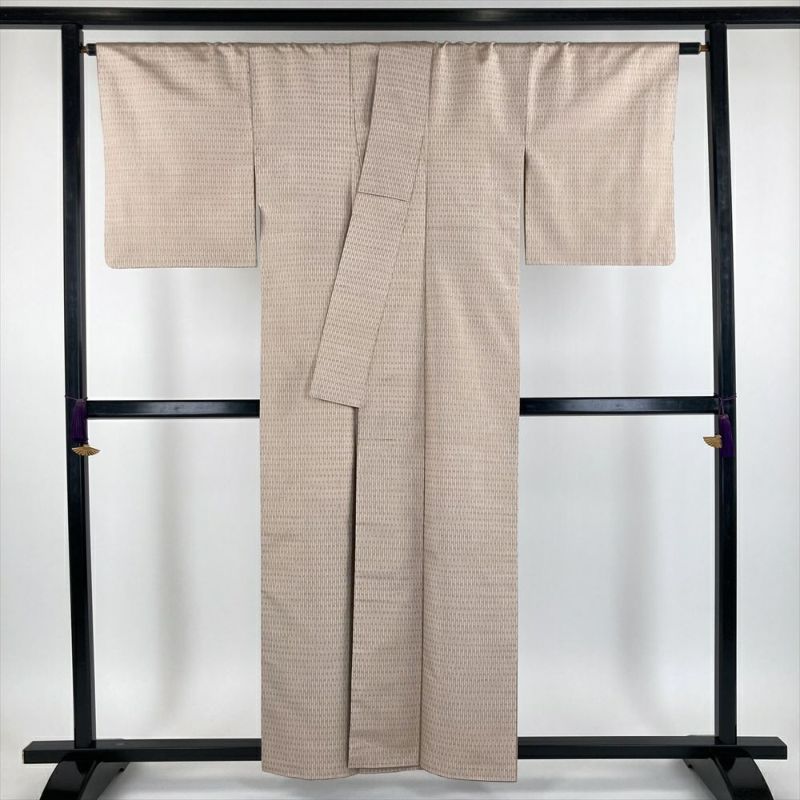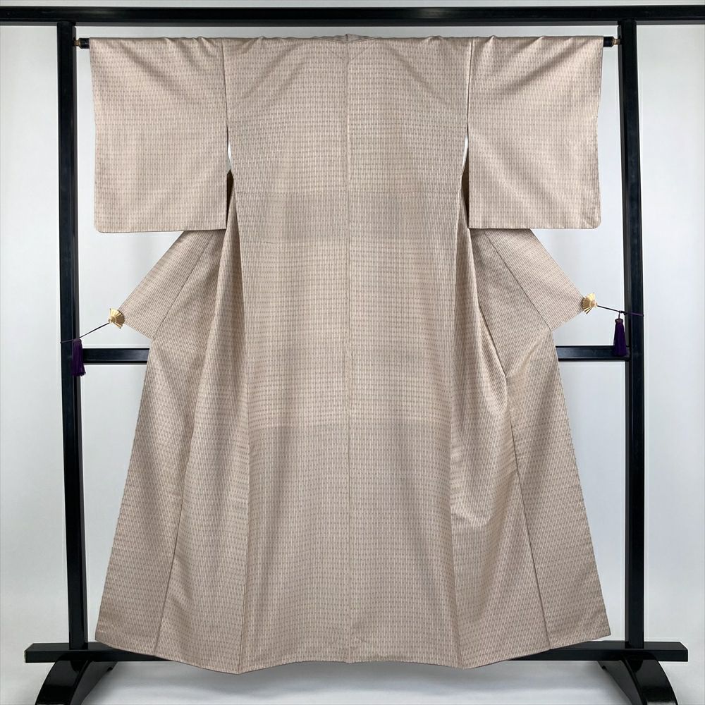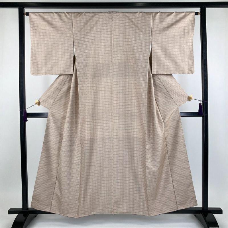 (中古)南風原花織 紬 ベージュ 灰梅色 カジュアル 織り幾何学柄 抽象柄 袷【身丈】152cm【裄丈】64cm