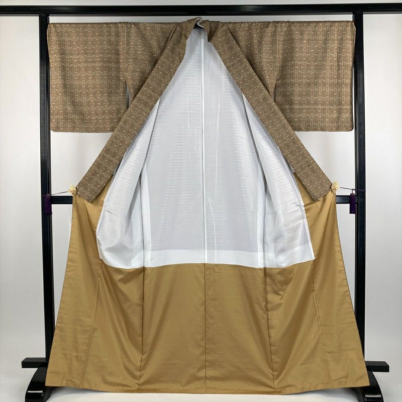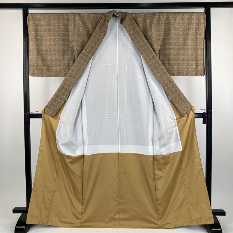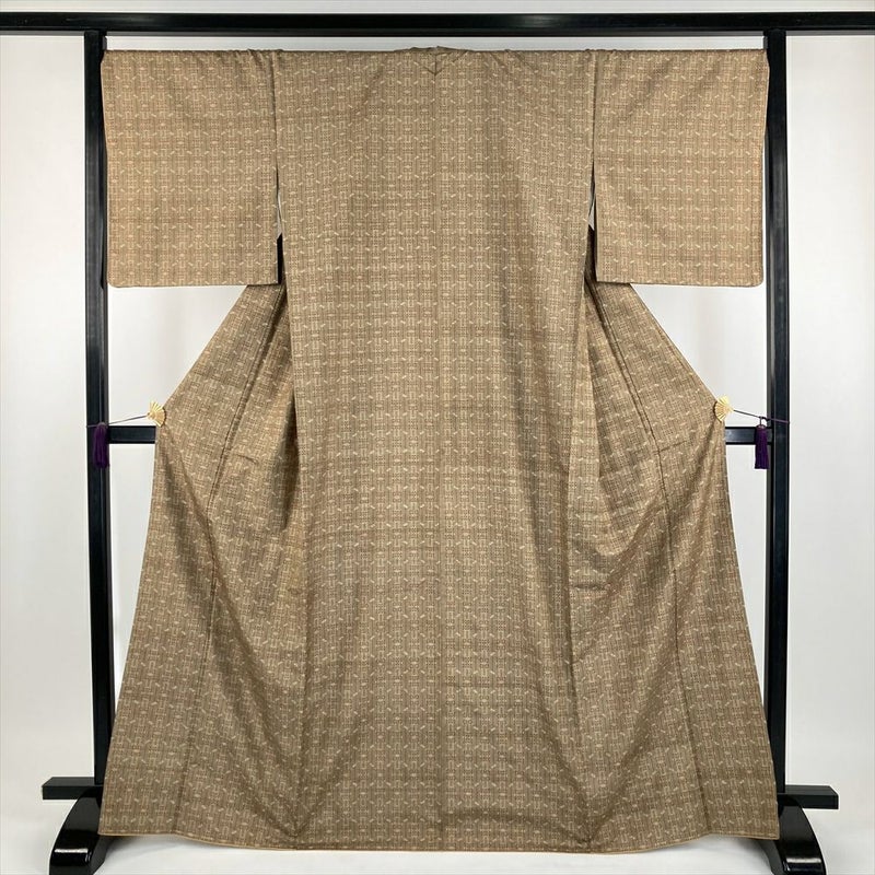 (中古)読谷山花織 紬 薄茶色 ベージュ カジュアル 袷【身丈】163cm【裄丈】68.5cm
