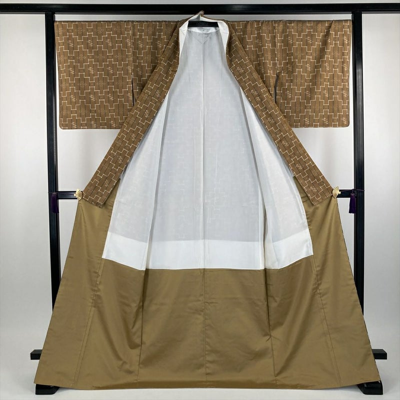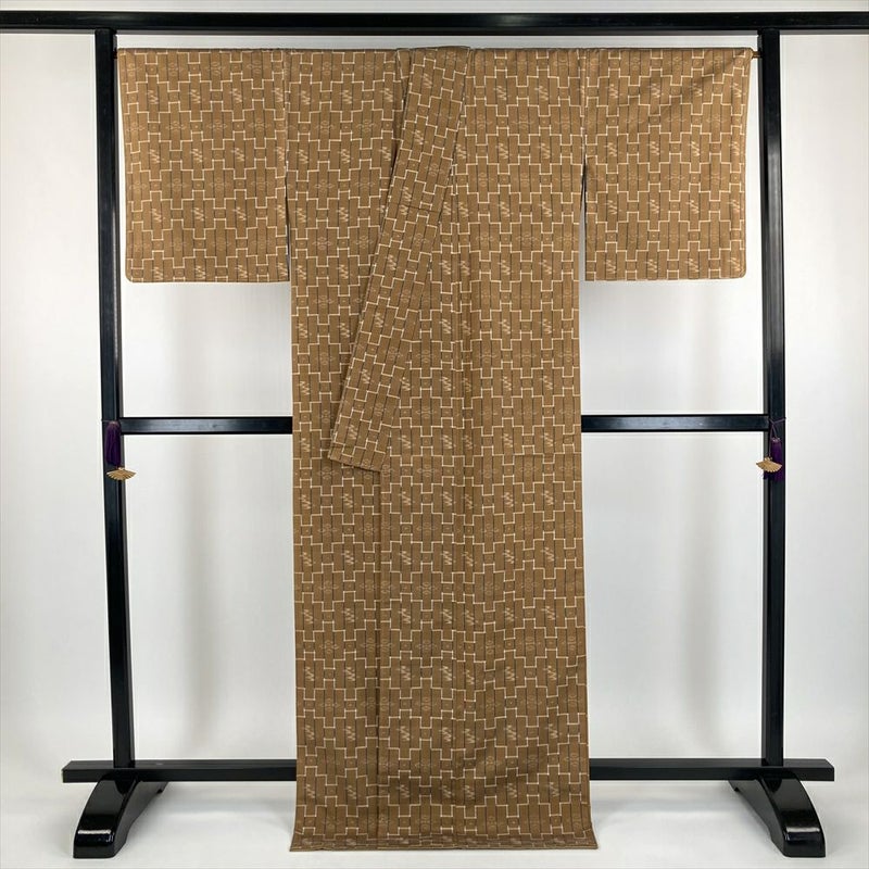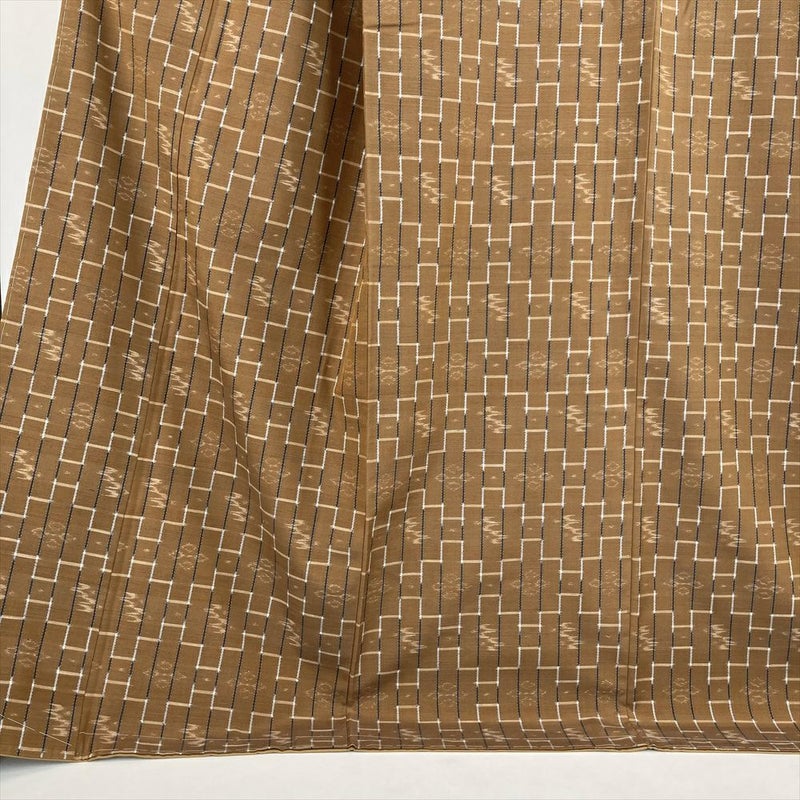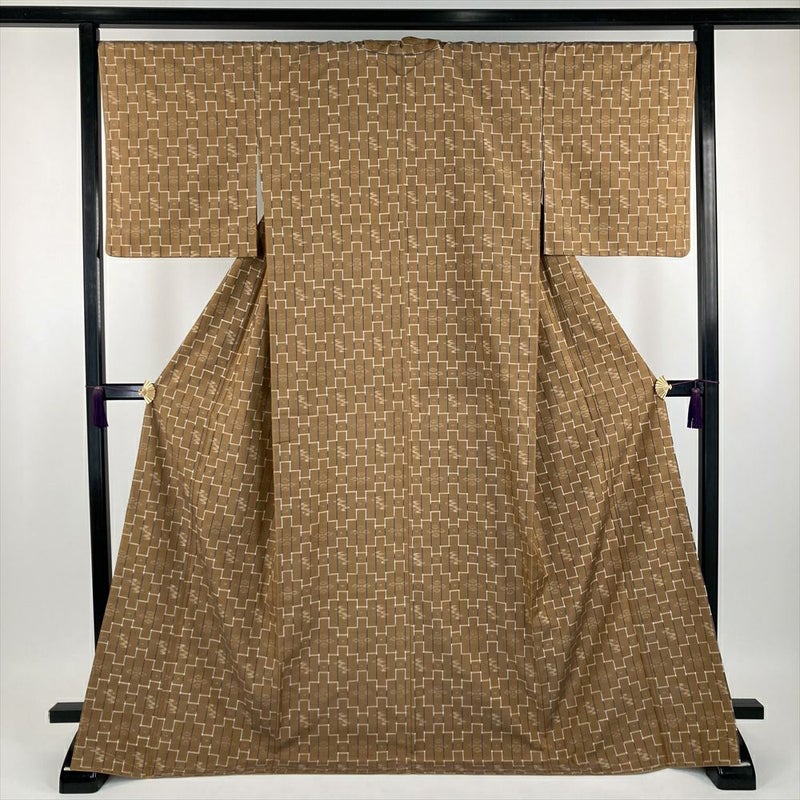 (中古)本場琉球絣 紬 茶色 カジュアル 手織り 鳥 袷【身丈】165.5cm【裄丈】69cm