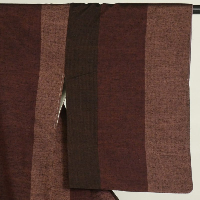 【色柄】茶 ピンク ワイン色 太い縦縞 袷