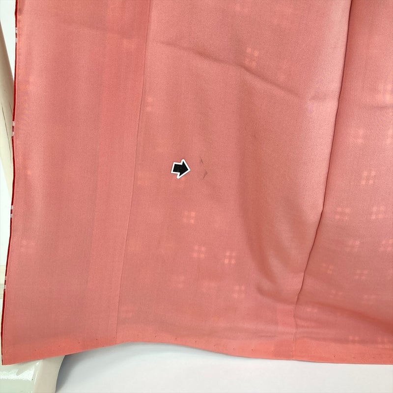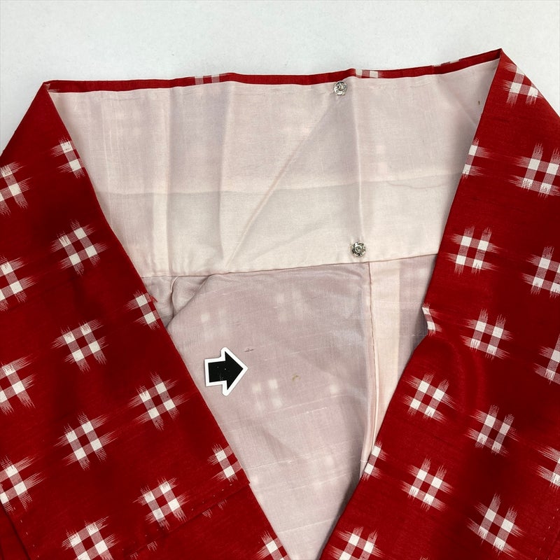 (中古) 紬 赤 カジュアル 井桁 袷 絹 【身丈】162.5cm【裄丈】67cm