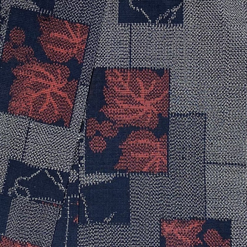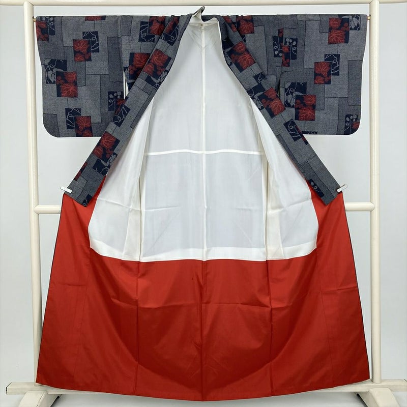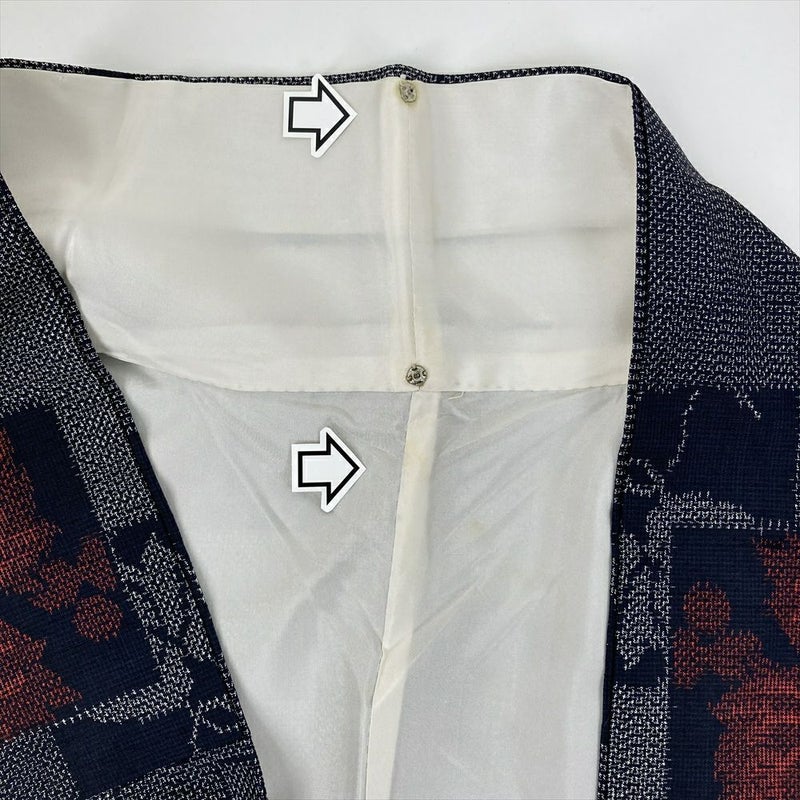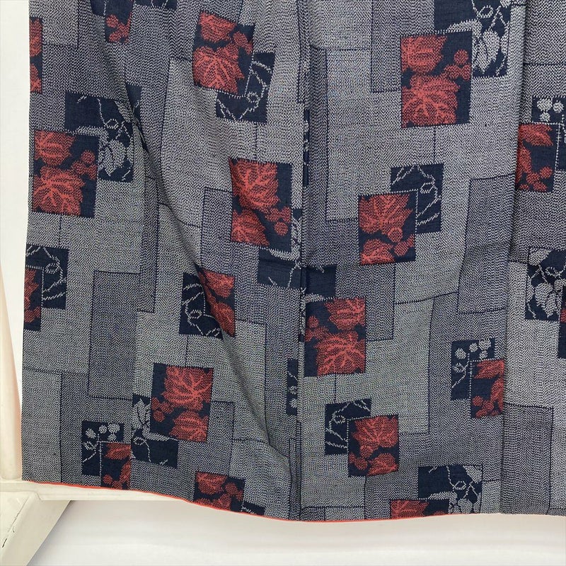 (中古) 紬 濃紺 カジュアル 短冊 野葡萄 袷 絹【身丈】152cm【裄丈】67cm