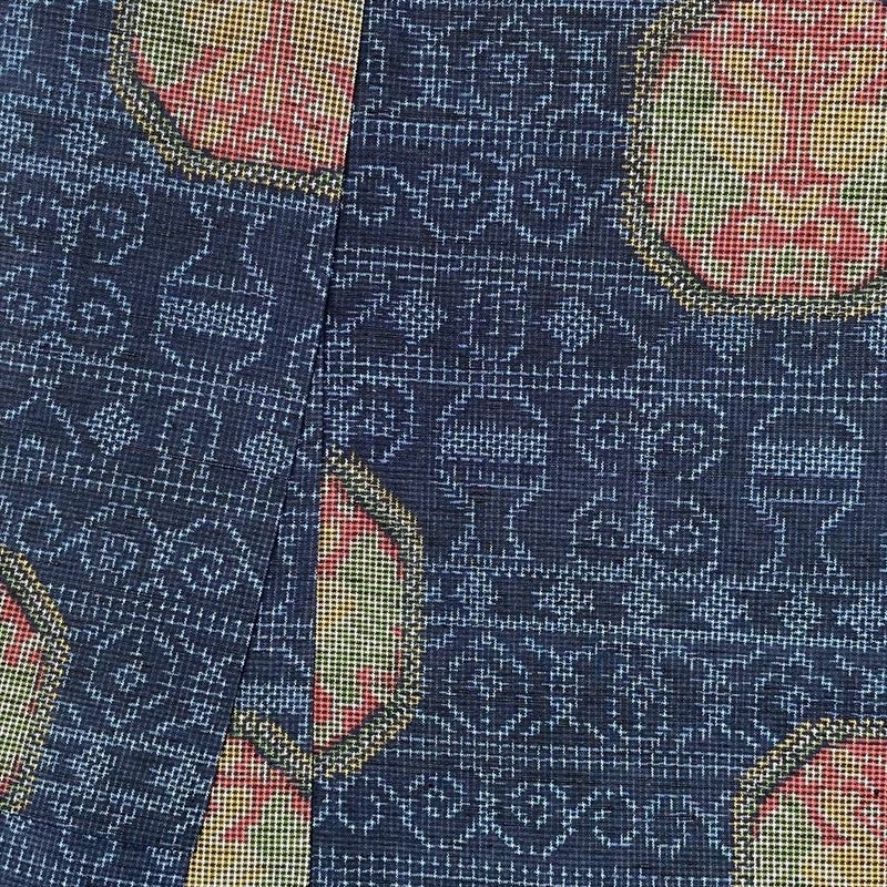 伝統の技法に異国のエッセンスを融合させたデザインが、紬の素朴さの中に、どこか神秘的な印象を与えます。