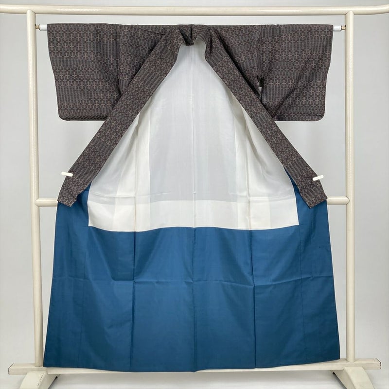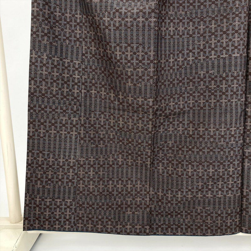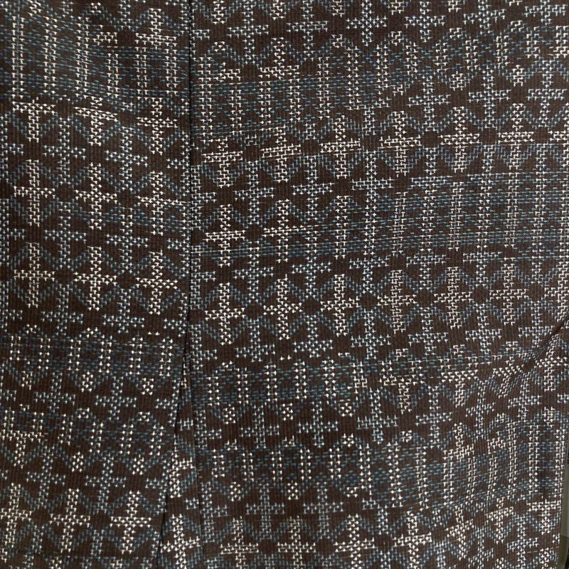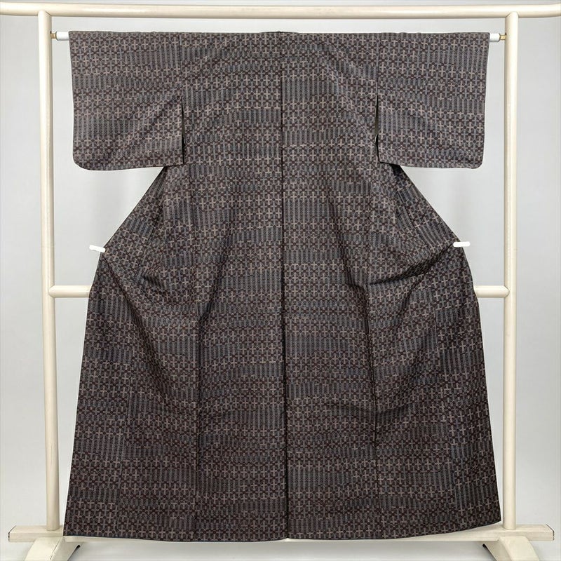 (中古) 紬 茶 カジュアル 幾何学 袷 絹【身丈】151cm【裄丈】63cm