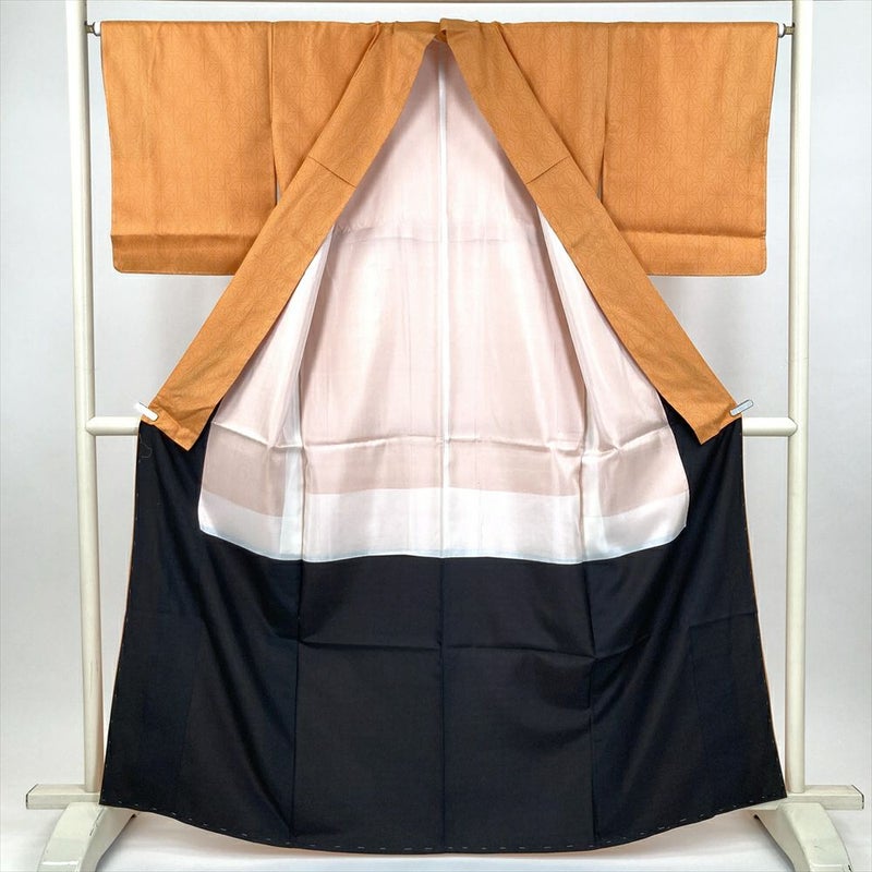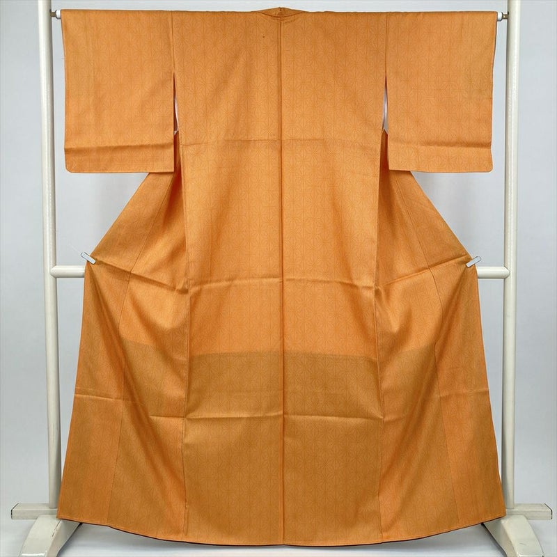(中古) 紬 オレンジ カジュアル 麻の葉 袷 絹【身丈】157.5cm【裄丈】65cm