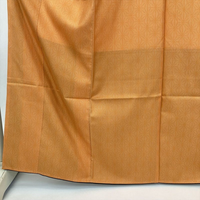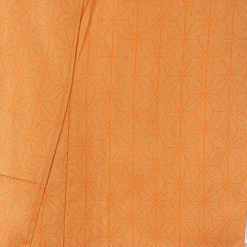 パッと明るいオレンジ色!麻の葉模様の紬(しつけ糸付き)