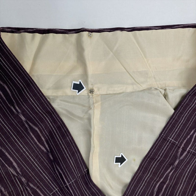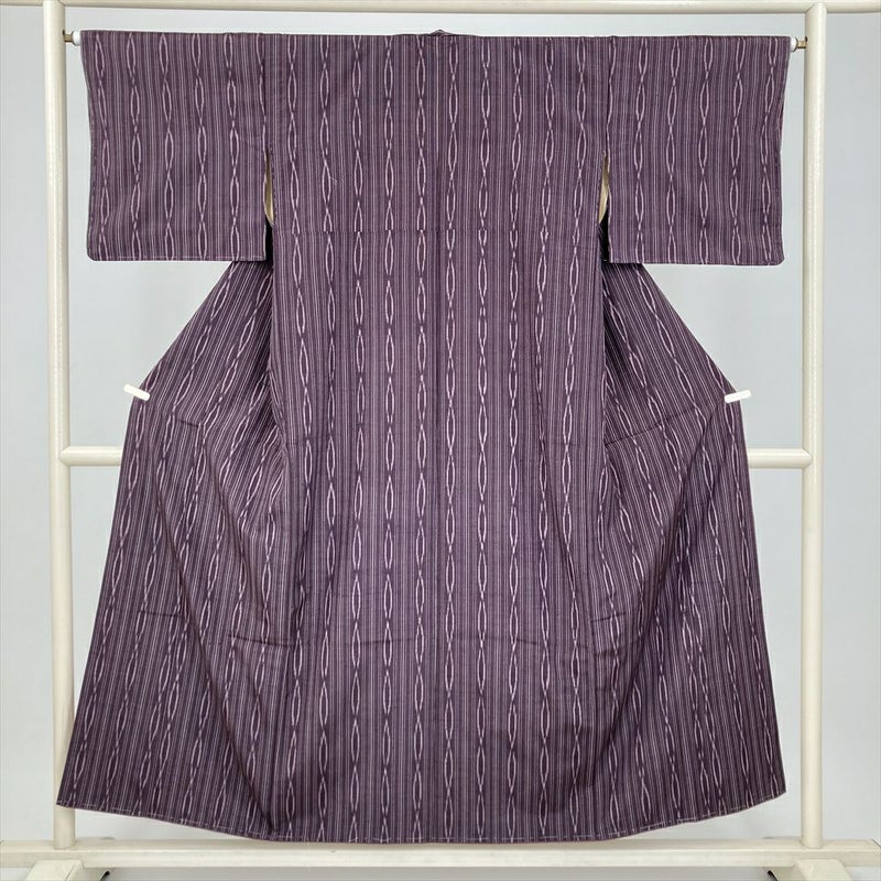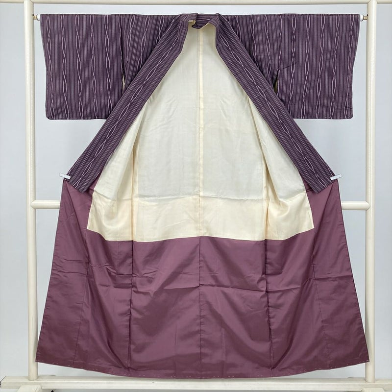 (中古) 紬 赤紫 カジュアル 縞 立涌 袷 絹【身丈】146.5cm【裄丈】65cm