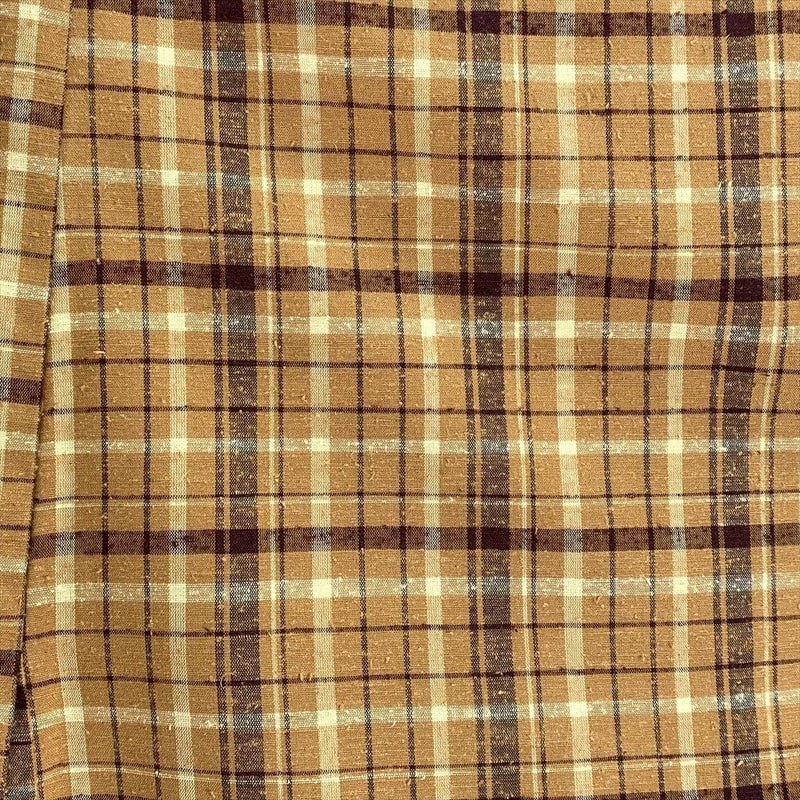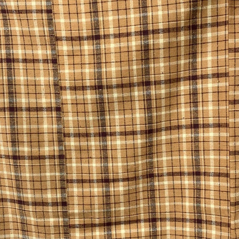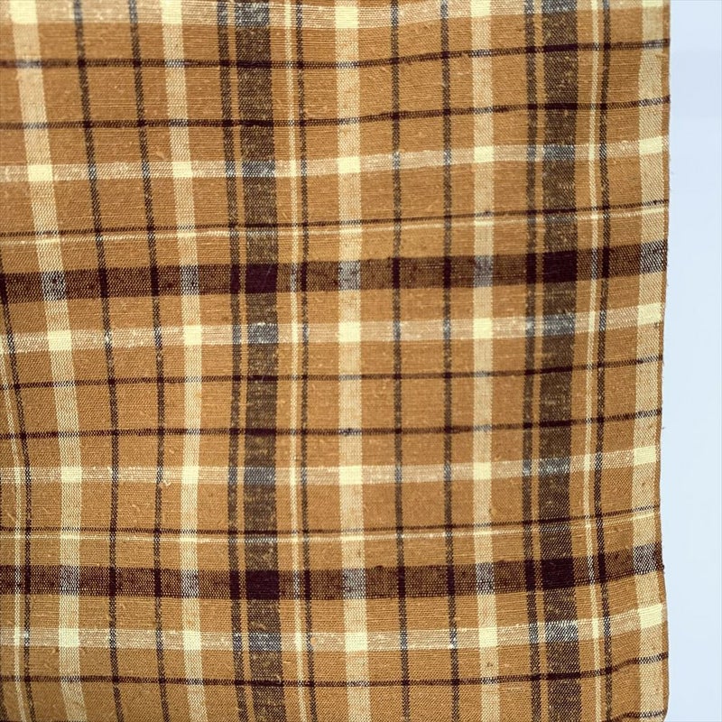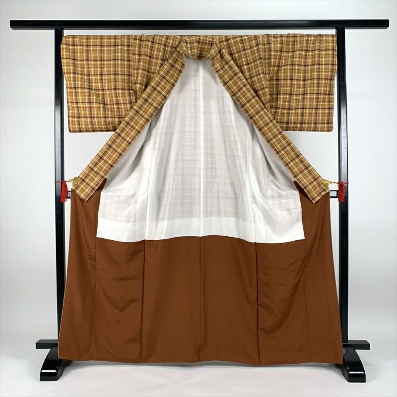 (中古)紬 カジュアル 黄色 袷 格子 チェック柄 M【身丈】163.5cm【裄丈】69cm