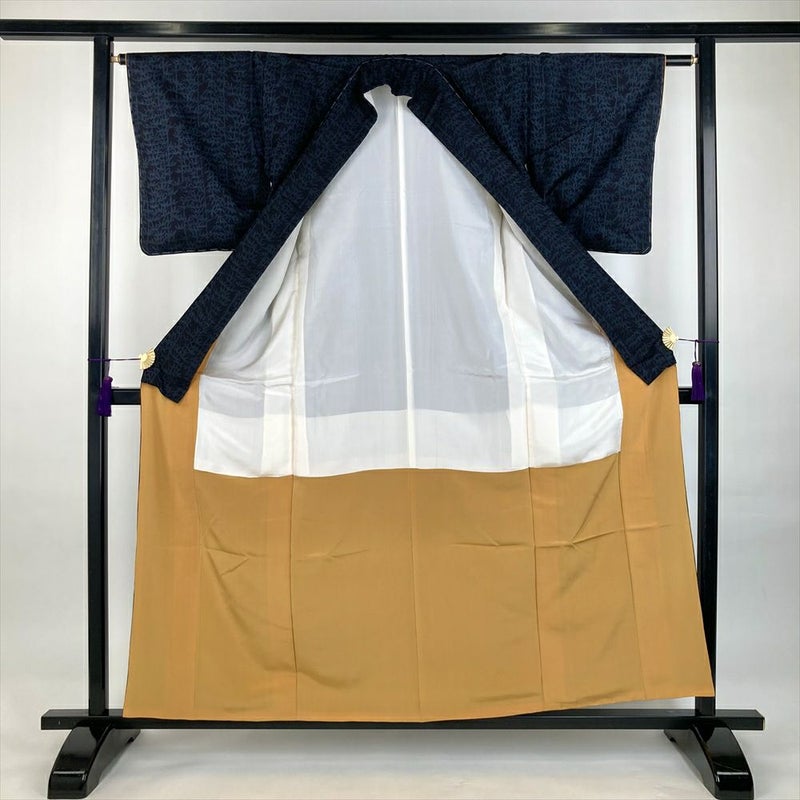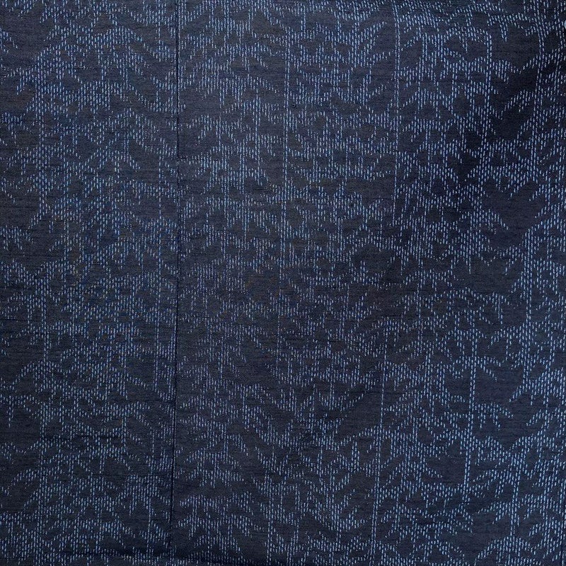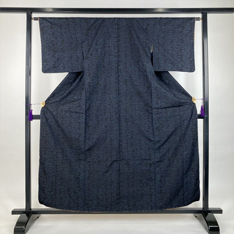 (中古)紬 濃紺 カジュアル 織り 竹林 袷 SS【身丈】154.5cm【裄丈】63cm