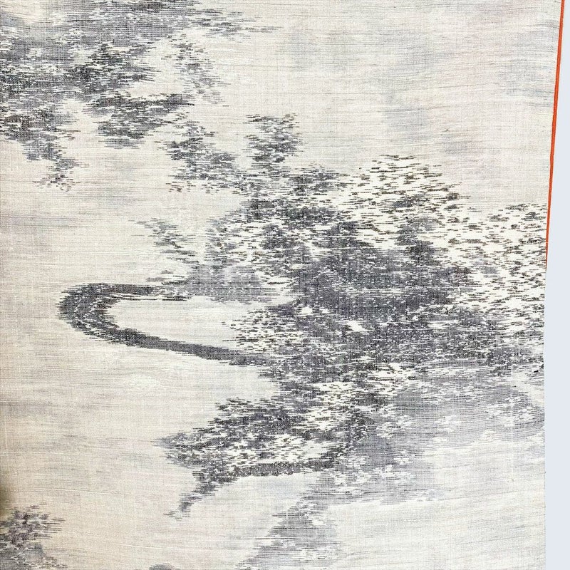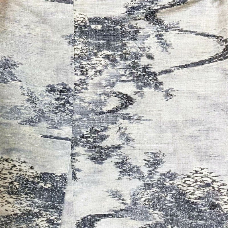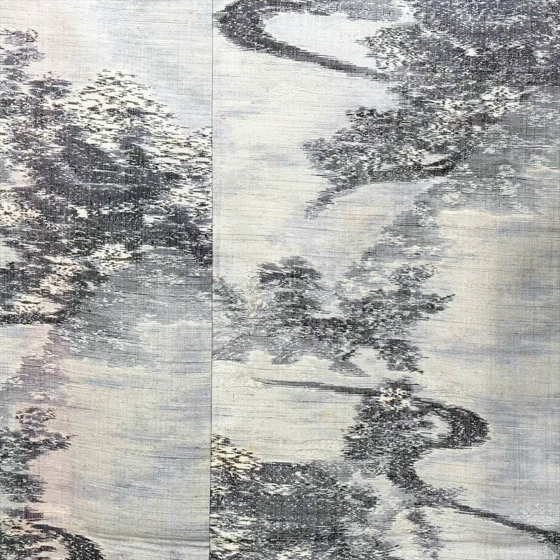 【色柄】薄灰 グレー カジュアル 織り 流水に遠山