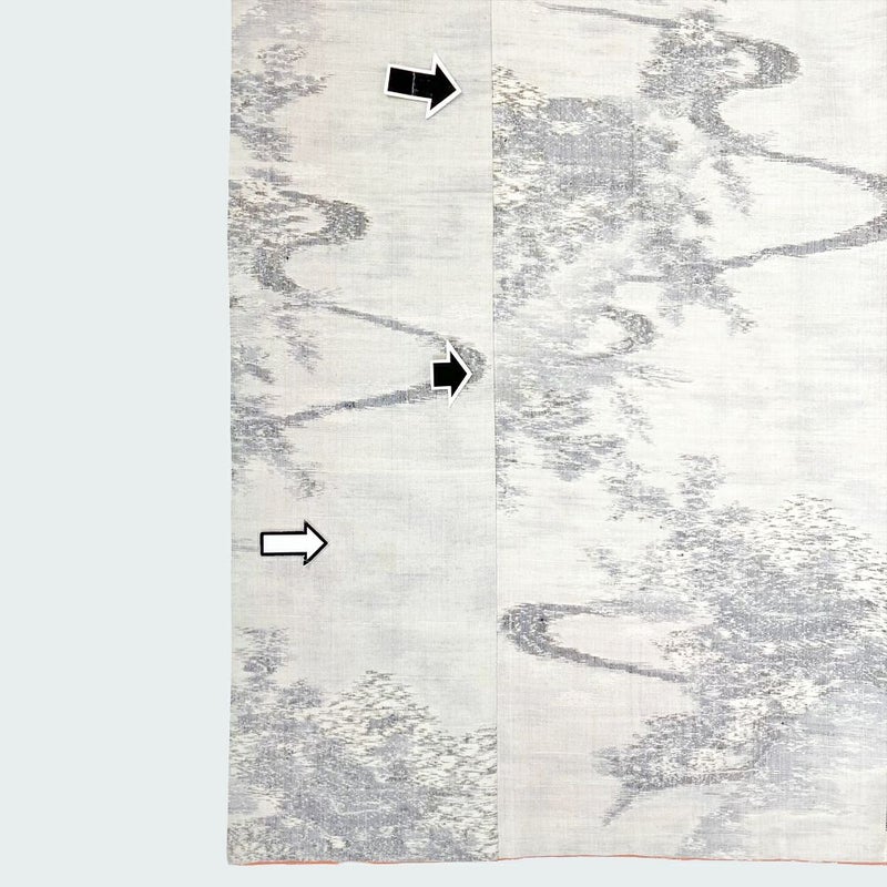 生地に厚みがあり耐久性にも優れています。細かいフシのある生地感は流行や時代に左右されません。普段着に、ちょっとしたお出かけに着用いただけます。保存臭がややございます。左衽、左前身、右前袖にシミ汚れがございます。小千谷紬