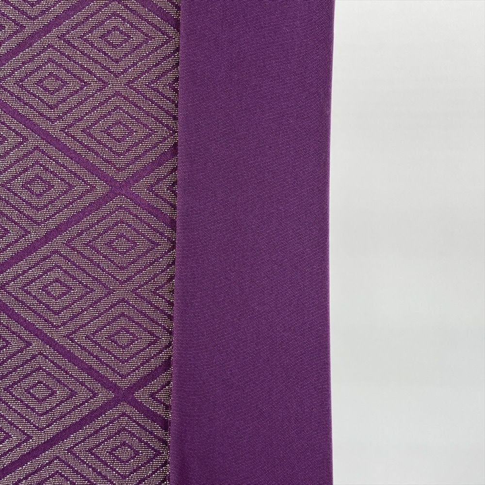 深みのある紫色の地に、細やかな金糸を織り込んだ菱模様が美しく調和しています。