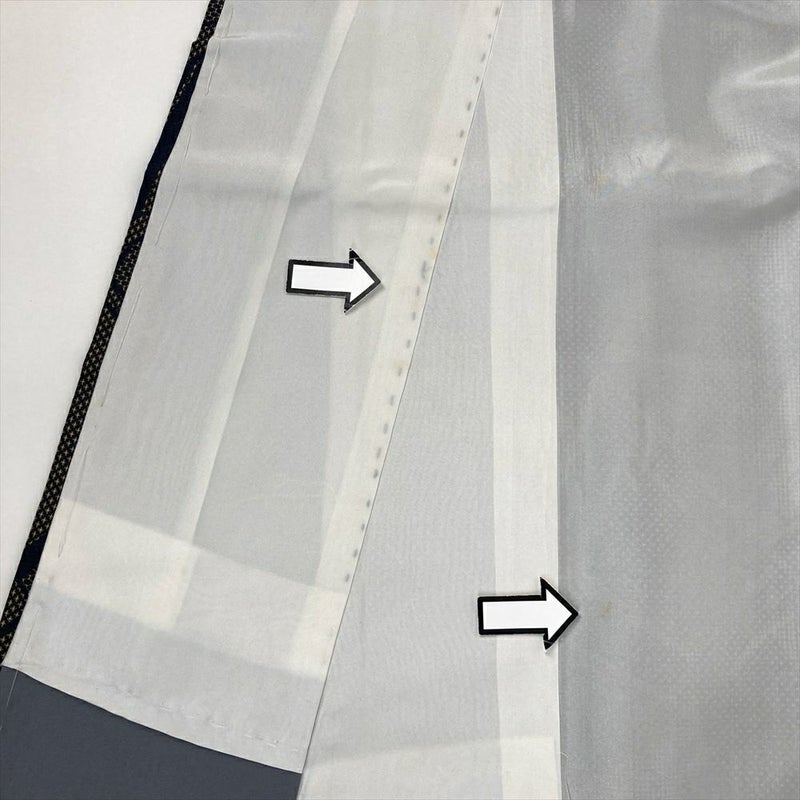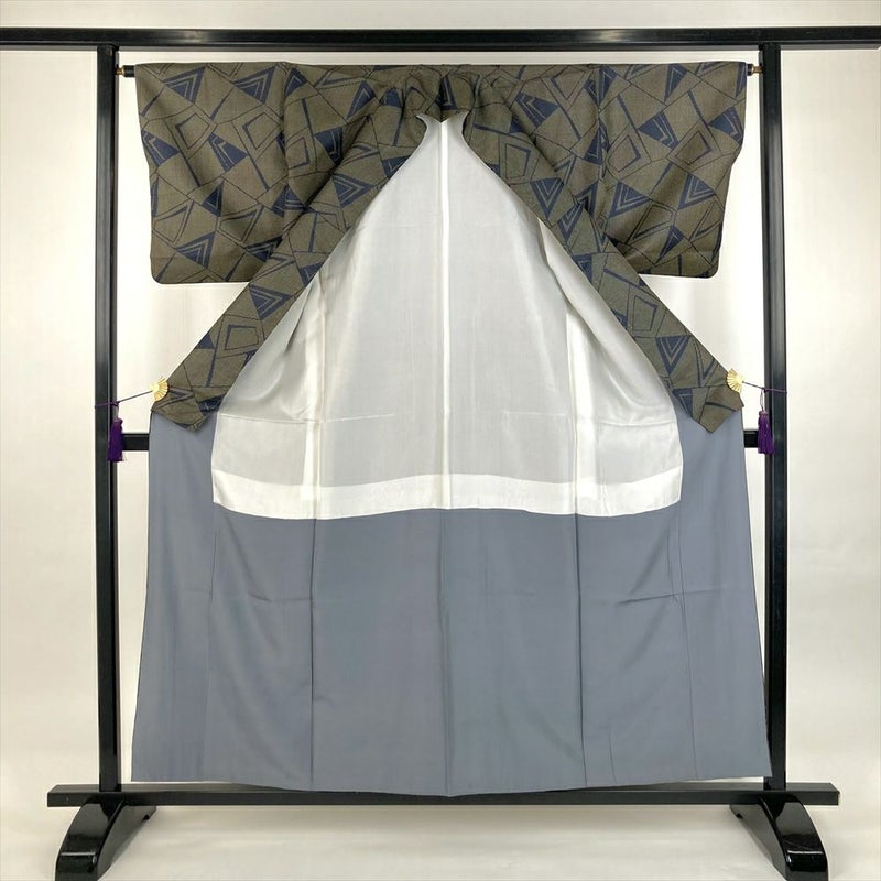 ひかえめな光沢があり、手触りや肌触りがよく軽くて丈夫です。普段着やおしゃれ着として使えるカジュアルなお着物です。衿裏にシミ汚れがございます。保存臭がややございます。