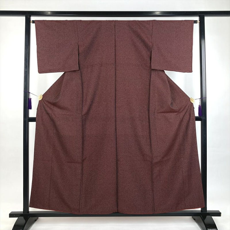 表面に細かいシボ状の風合いがあるため、薄手でザラザラとした手触りを感じられます。カジュアル向きです。普段着に、ちょっとしたお出かけにおすすめです。胴抜き仕立て。保存臭がややございます。しつけあり。