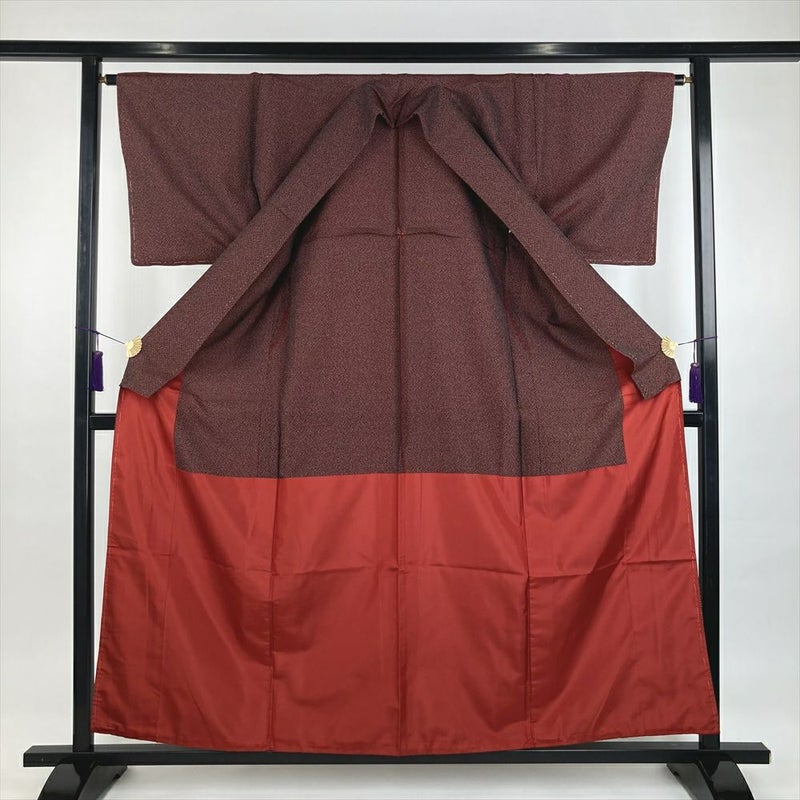 (中古)紬 小豆色 赤茶 カジュアル 絣 十字 袷 S【身丈】155cm【裄丈】64cm