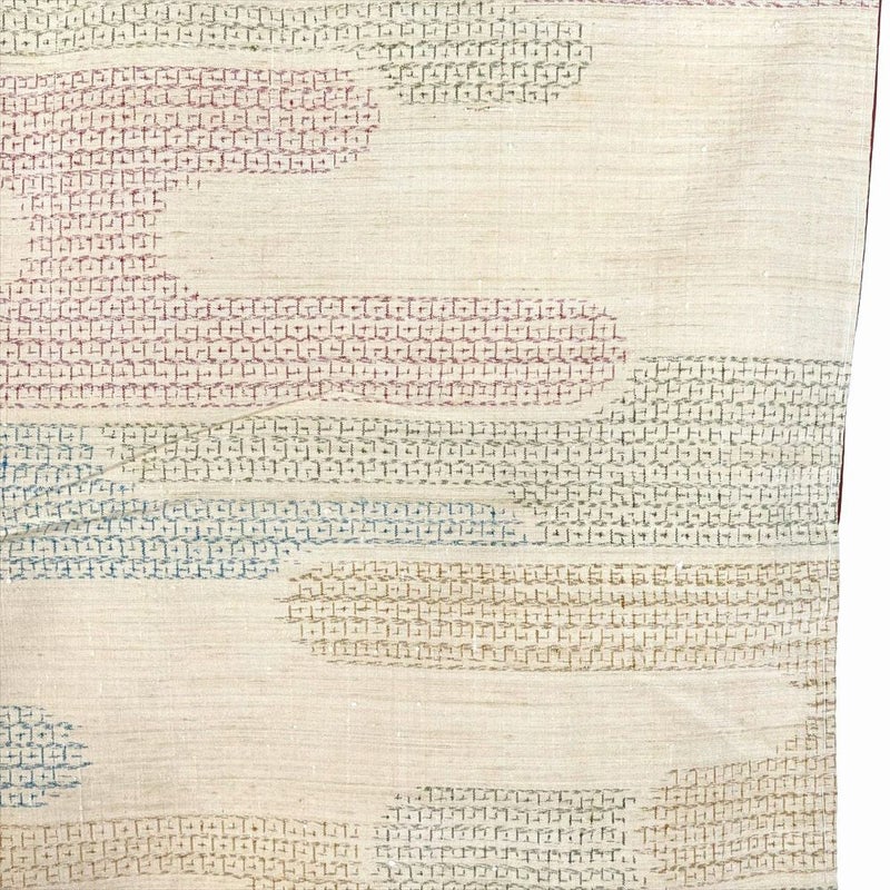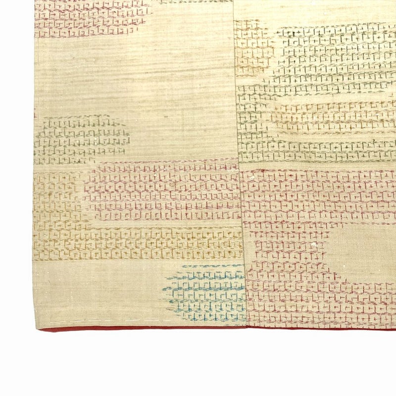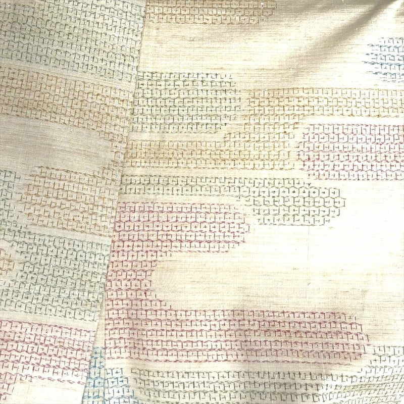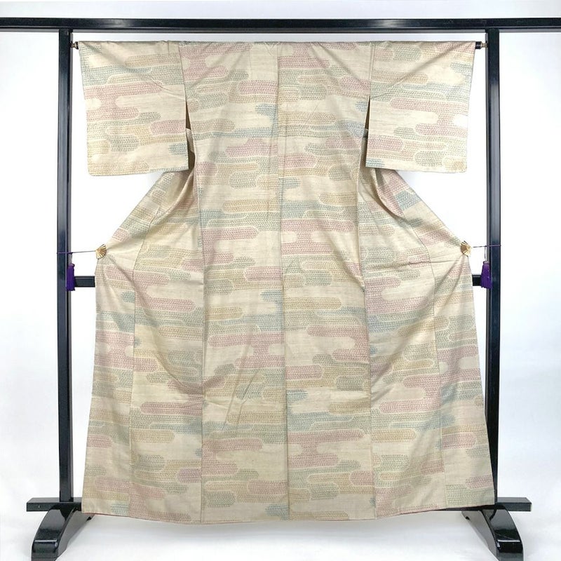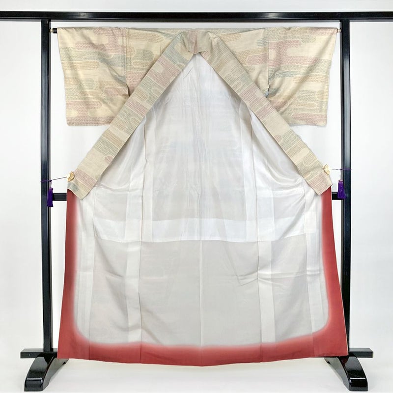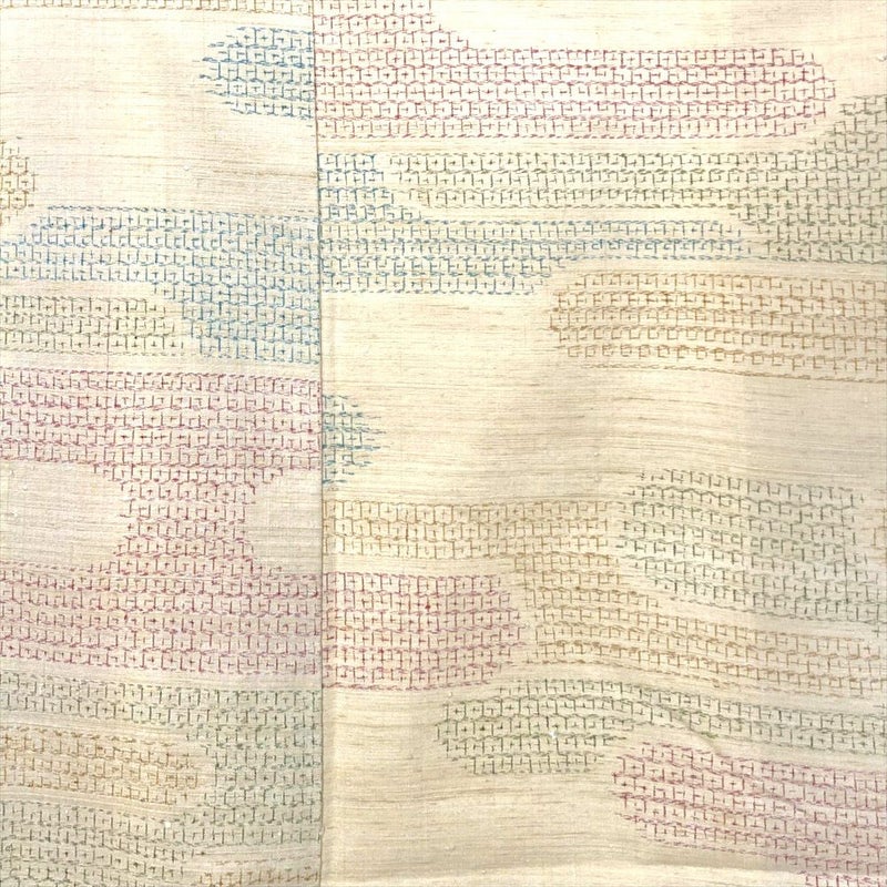 紬は、あらかじめ染めた糸を、縦・横に織って模様にします。糸1本1本を染めて織り上げるため、色落ちや劣化が少なく耐久性に優れています。カジュアルシーンで着用します。保存臭がややございます。