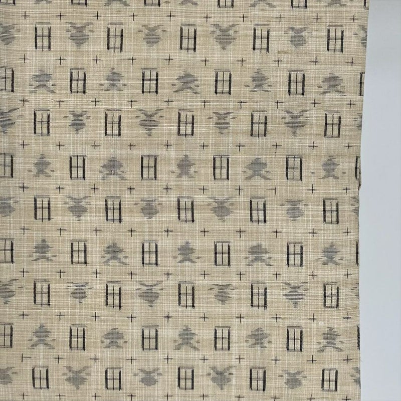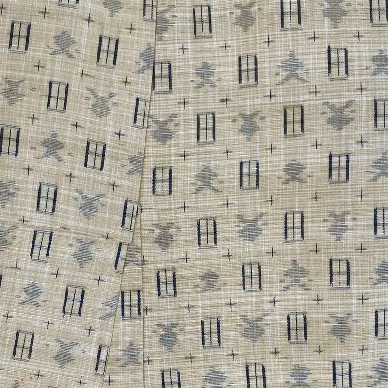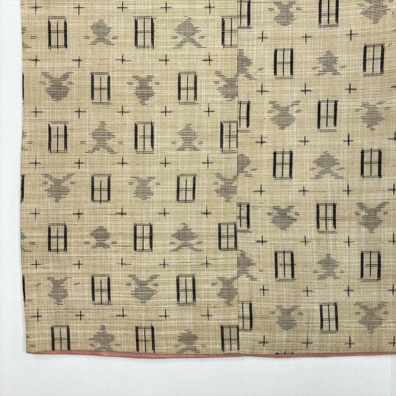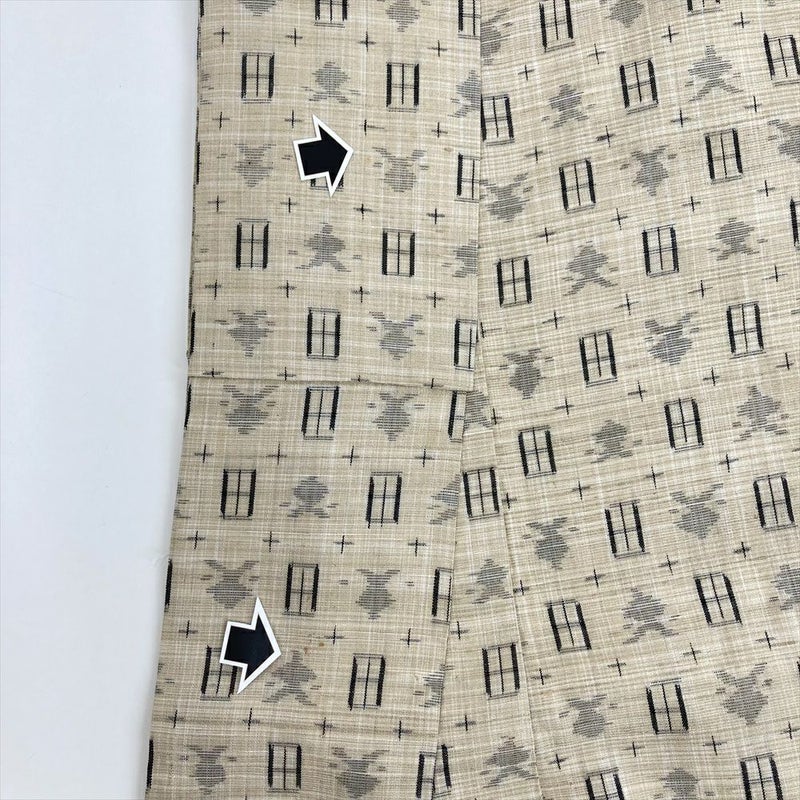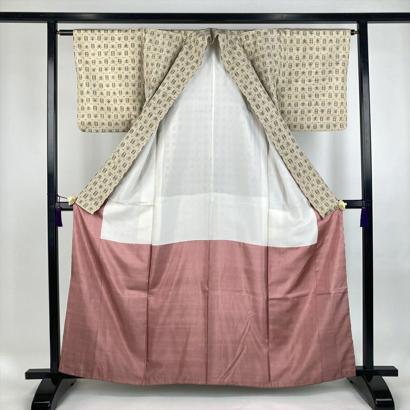(中古)紬 ベージュ カジュアル 織り 幾何学 袷 S【身丈】156.5cm【裄丈】62.5cm