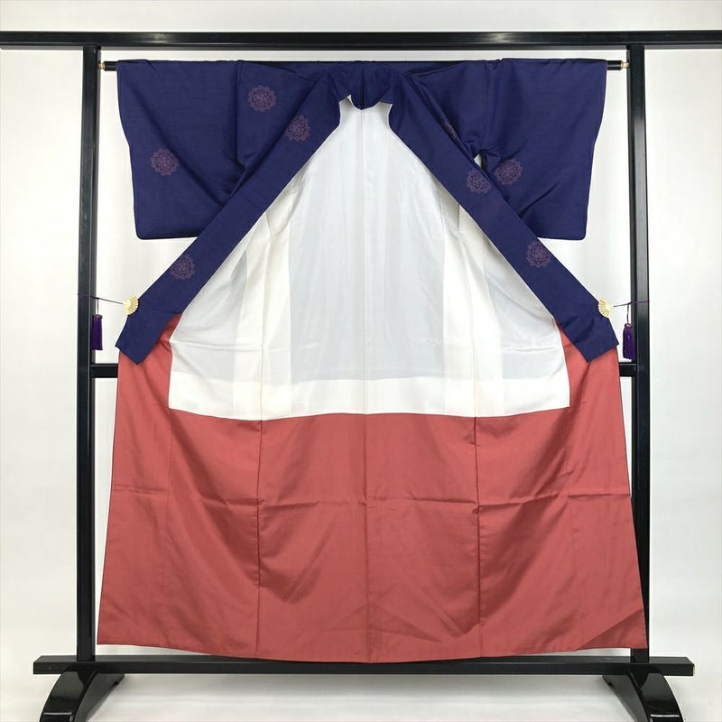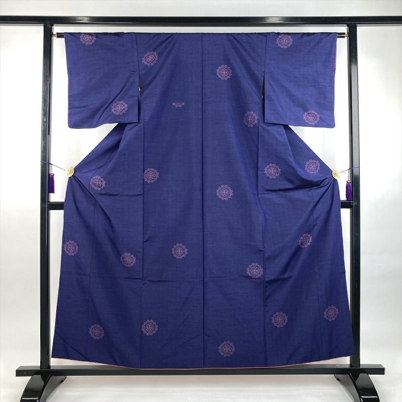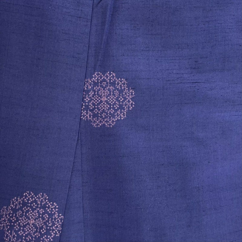 (中古)紬 紺 カジュアル 絣 華文 袷 SS【身丈】152cm【裄丈】63.5cm